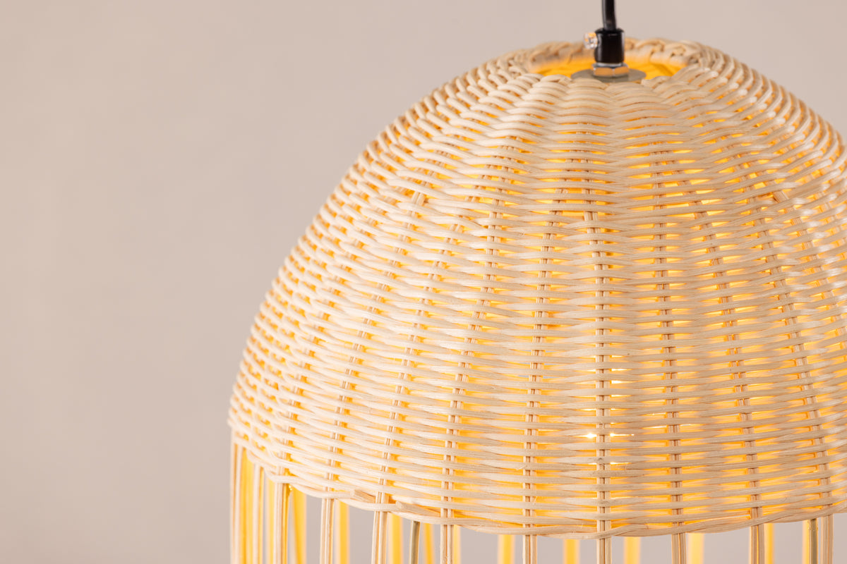 Med loftlampen Alsbäck fra Vind skaber du en rolig og harmonisk stemning i ethvert rum. Lampeskærmen består af rattan og har et unikt design, der giver rummet en blød fornemmelse. Placer lampen i soveværelset eller over sofabordet og få et behageligt lys i rummet samt et flot interiørdetalje, der holder over tid.