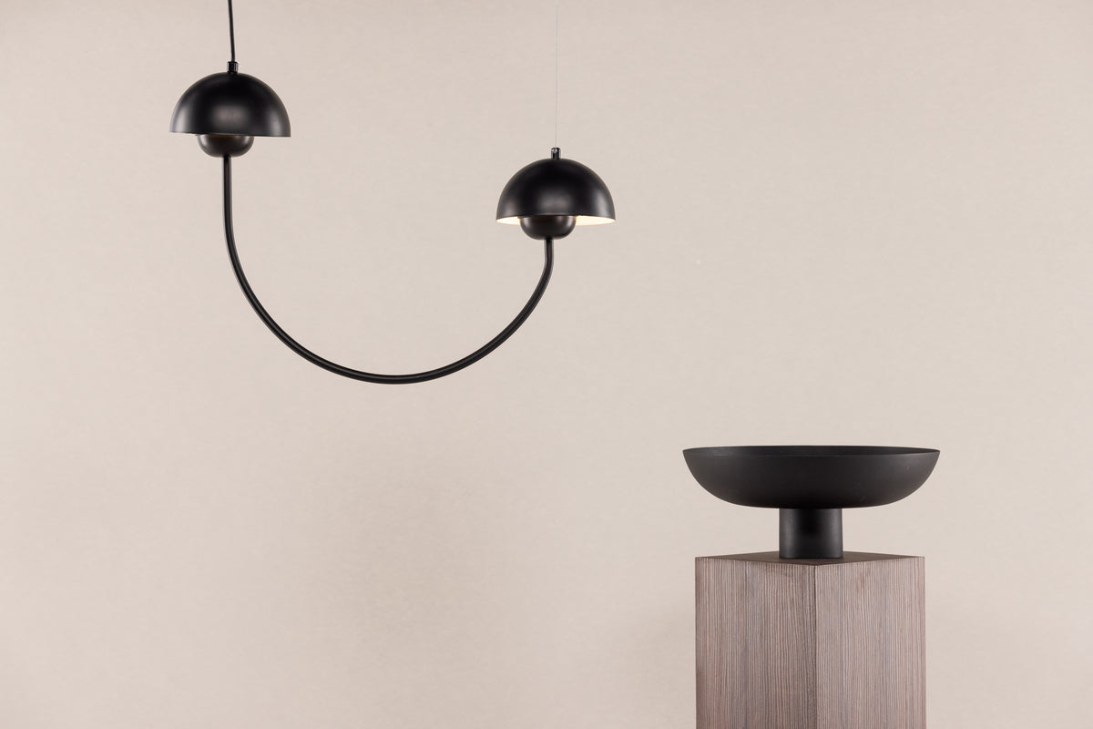 Loftlampen Lyckorna består af to mindre lamper, der er forbundet med en rund ramme i sort jern. Lamperne har et rundt loft, der giver et behageligt lys til rummet. Denne lampe er perfekt til dem, der søger en dekorativ, men stilfuld lampe med et blødt design, der passer ind i de fleste rum og indretningsstile. Loftlampen tilhører Vind-kollektionen.