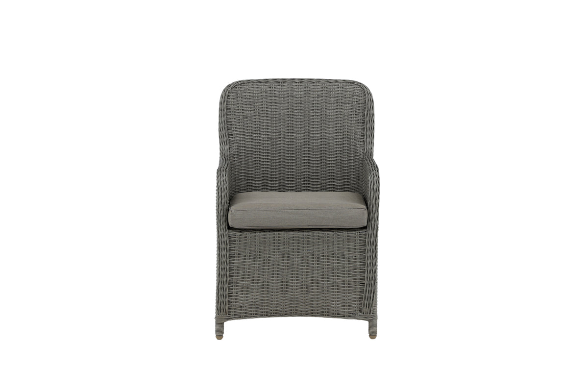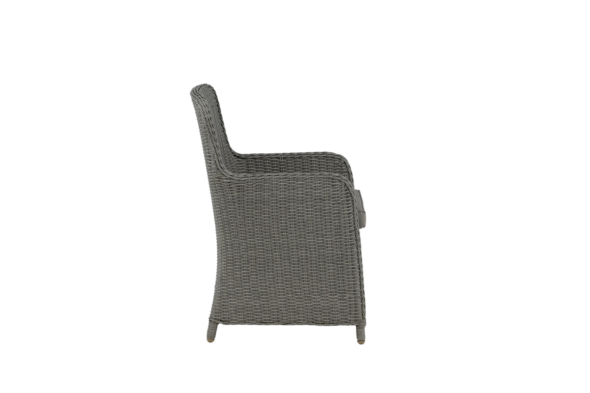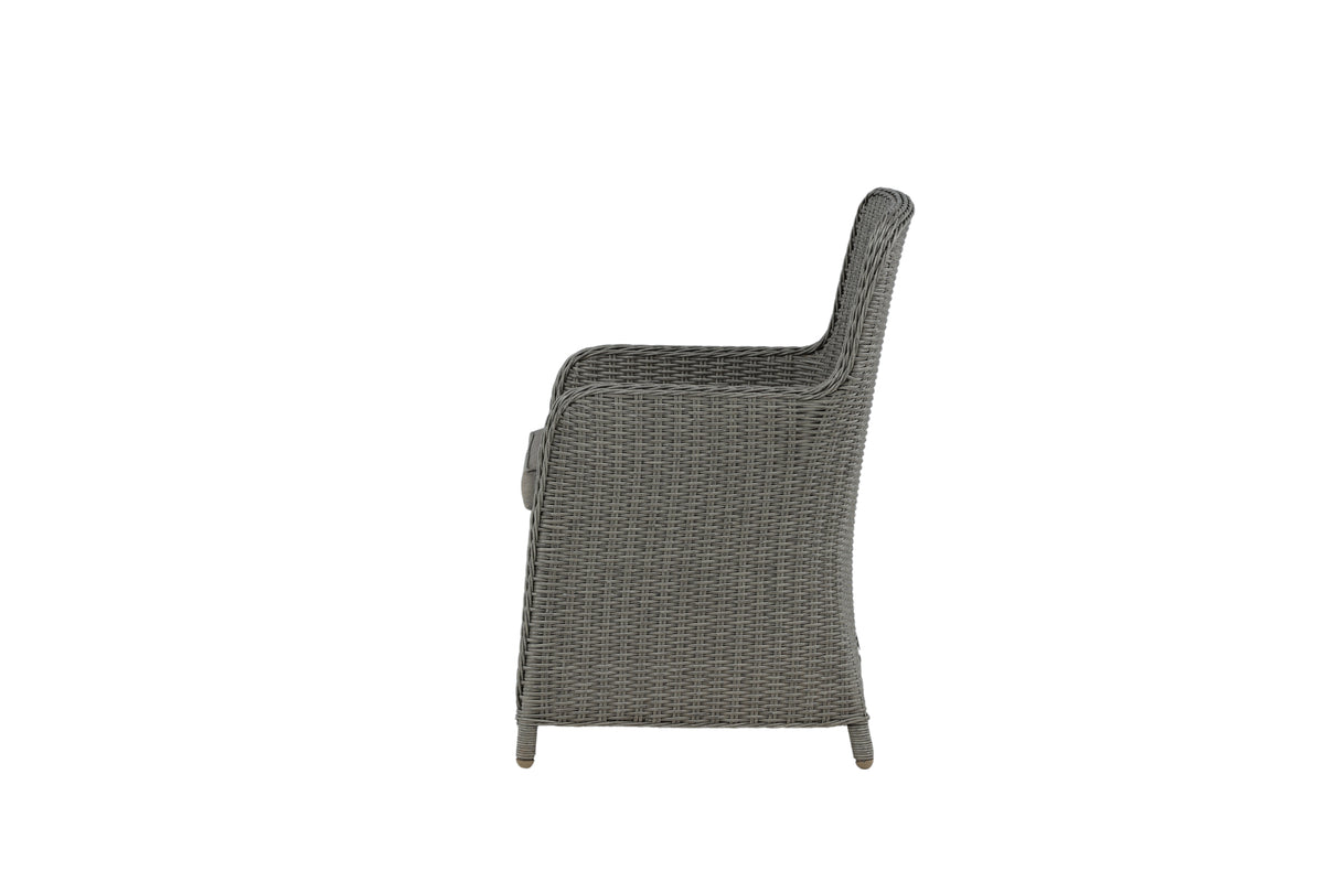 Skab et afslappende blikfang på terrassen til sommer med denne spisebordsstol fra Wembley-serien. Det stilrene design og den lækre grå farve giver et moderne indtryk. Stolen er en ægte klassiker og passer ind i de fleste hjem. Med høje armlæn er stolen behagelig at sidde i tæt ved bordet. Sid behageligt og nyd dejlige måltider udendørs!