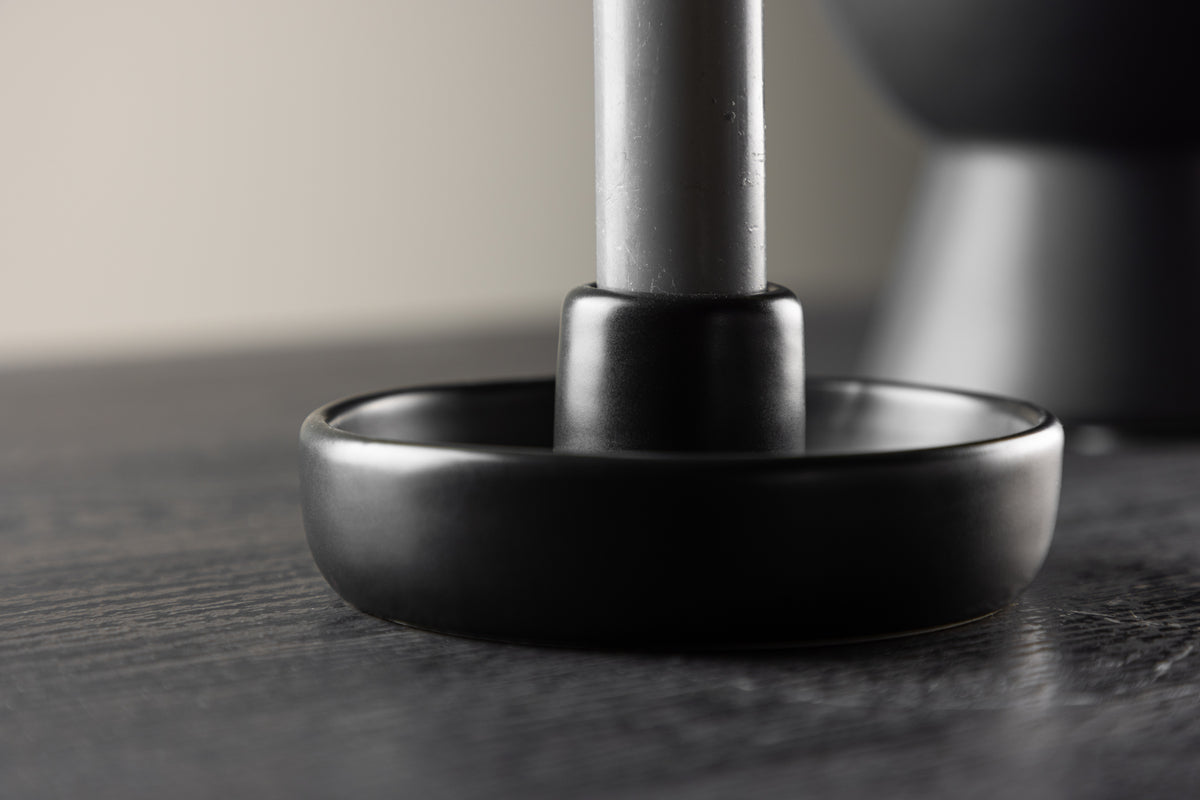 Opdag skønheden ved Otis, den rundformede lysestage, der vil blive en tidløs perle i dit hjem. Otis er en del af en farverig serie, hvilket betyder, at alle kan finde deres favorit og perfekt matche den med deres personlige stil. Fremstillet af det trendy materiale stentøj og farvet i en elegant sort nuance, bringer Otis en følelse af moderne elegance til dit hjem. Dens minimalistiske design gør den til en smuk detalje på dit bord eller hylde, der passer perfekt ind i forskellige indretningsstile. Når du skaber en afslappet atmosfære med Otis, er det vigtigt at undgå at skrabe overskydende voks af med skarpe genstande for at bevare den smukke overflade af din lysestage. Lad Otis oplyse dit hjem og skabe en stemning af ro og enkelhed.