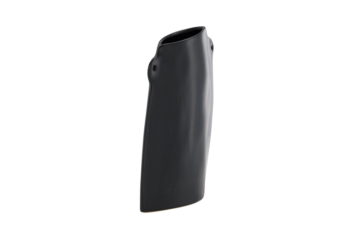 Mød denne tidløse skabelse – en mat sort vase med en form, der skiller sig ud fra mængden. Med en højde på 21 cm og en slank åbning til blomster bliver denne vase hurtigt en favorit i dit hjem. Hvad der gør denne vase unik er ikke kun dens farve, men også dens kreative form. Den slanke åbning giver dig mulighed for at skabe et smukt og kunstnerisk indtryk, hvilket gør den til en dekoration i hvert rum. For at tilføje ekstra charme har vasen to små håndtag på siderne, hvilket giver den et ekstra touch af elegance. Eksperimenter med at placere vasen forskellige steder i dit hjem. Denne mørkegrå vase er ikke bare en beholder til blomster; den er selv en kunstnerisk skabelse, der vil fange opmærksomheden og tilføje karakter til hvert rum. Giv dit hjem et strejf af kreativitet og stil med denne unikke og elegante vase.