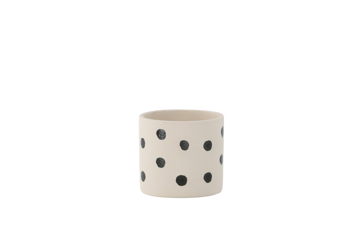 Muliggør kunstnerisk udtryk i dit hjem med potten, Sane. Denne hvide potte med store sorte prikker er en fortryllende skabelse, der tilføjer et legende og kreativt touch til din indretning. Sane er ikke bare en potte; det er en kunstnerisk palet, hvor de store sorte prikker danner et fascinerende mønster. Denne unikke detalje bliver straks et blikfang og tilføjer en dosis legesyge til dit hjem. Med en diameter på 11 cm er Sane perfekt til at placere i bogreolen for et ekstra detalje eller som et elegant accent på spisebordet. Lavet af stentøj er den robust og klar til at være en pålidelig og dekorativ følgesvend. Sæt dit personlige præg på dit hjem med Sane – en potte, der ikke kun tilbyder funktion, men også skaber en atmosfære af kreativitet og stil. Udforsk mulighederne og lad Sane blive en unik del af din indretning.