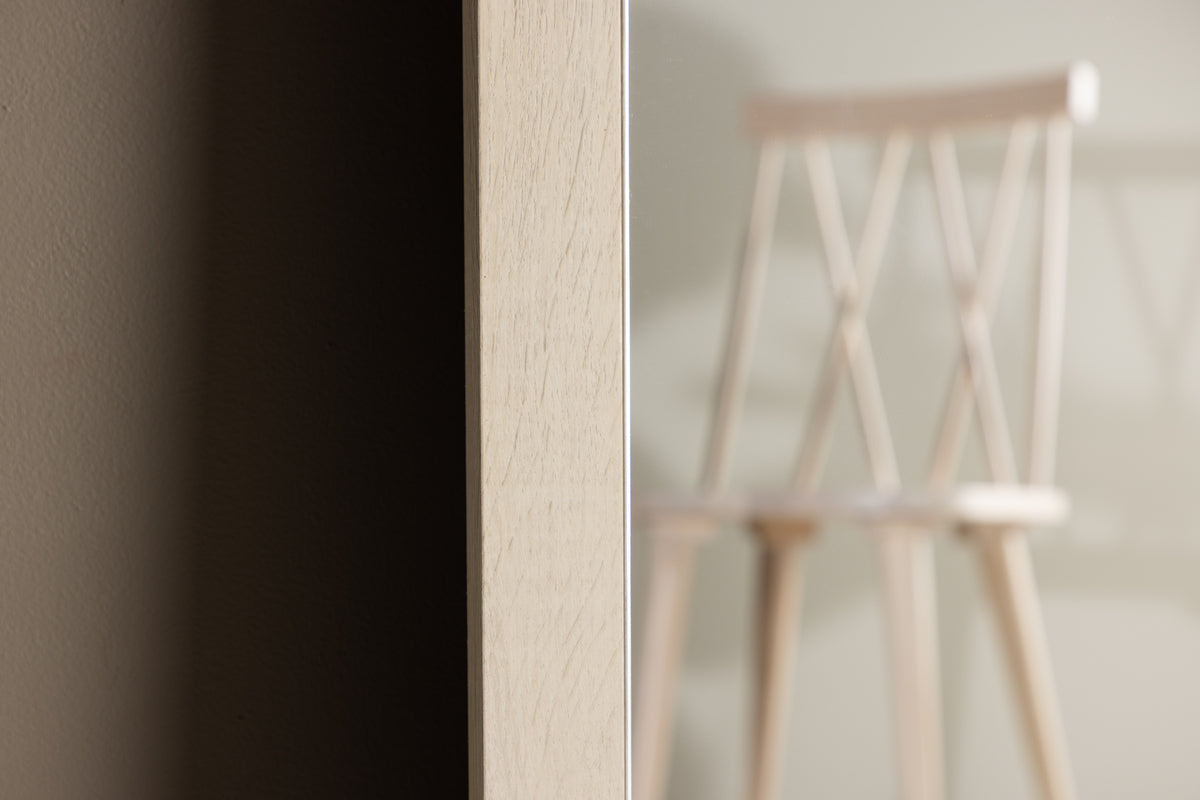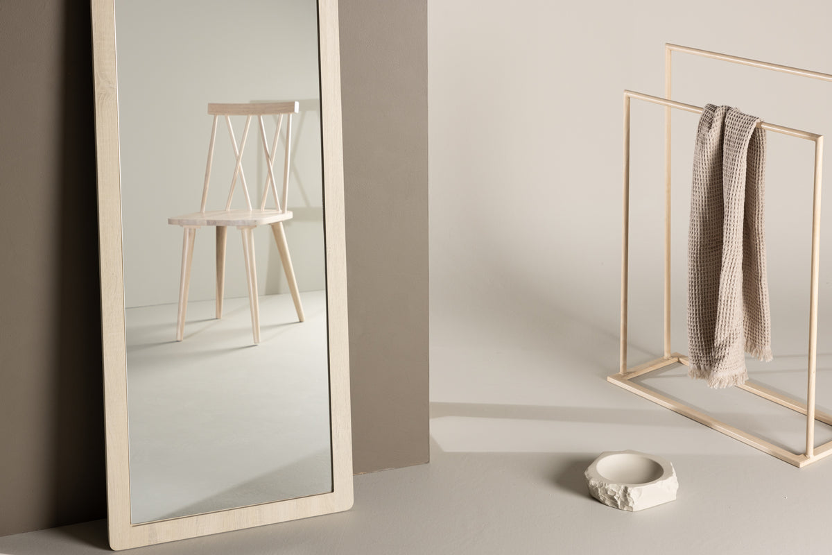 Den hvidvaskede MDF-ramme giver Memphis en tidløs og ren æstetik, hvilket gør det alsidigt og velegnet til forskellige interiørstile. Den afrundede form øverst giver spejlet en særlig karakter og gør det til et smukt supplement til dit rum.