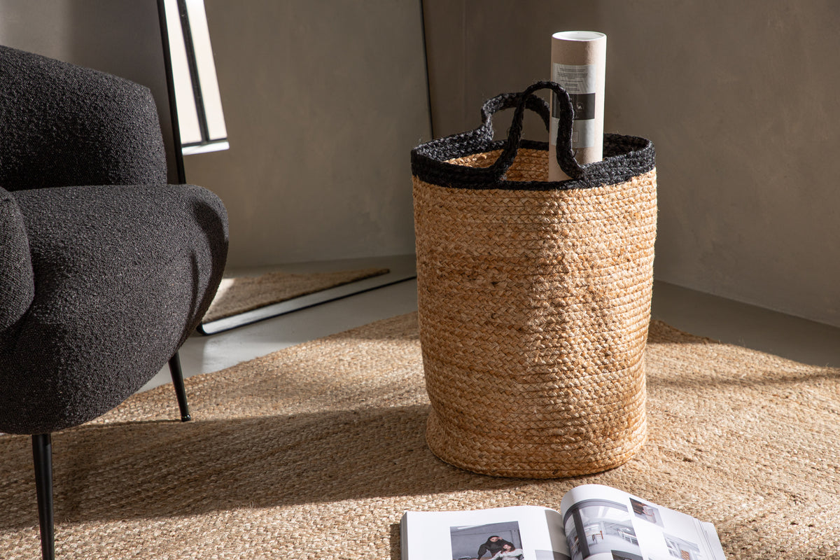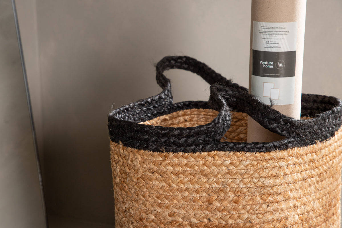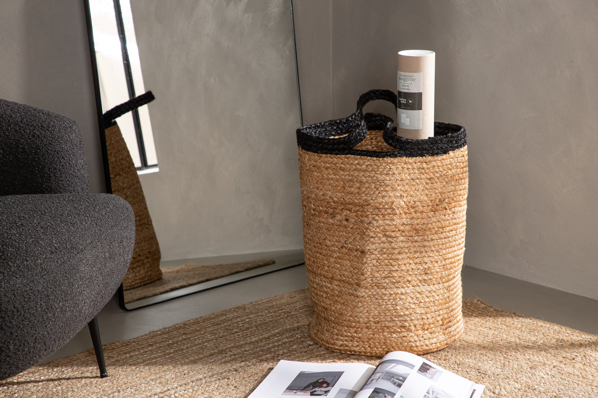 Dekorer dit hjem praktisk og moderne med en flot kurv fra Pune-serien! Denne fine opbevaringskurv i flettet jute har et højt stilfuldt design med to praktiske håndtag og en øverste ramme i sort farve. Brug den som opbevaring til tæpper og håndklæder eller som en potte til en flot plante. Dog er kurvene ikke vandtætte, så placér planterne i en fugt-sikker indre potte først. En flot indretningsdetalje og smart opbevaring på samme tid!
