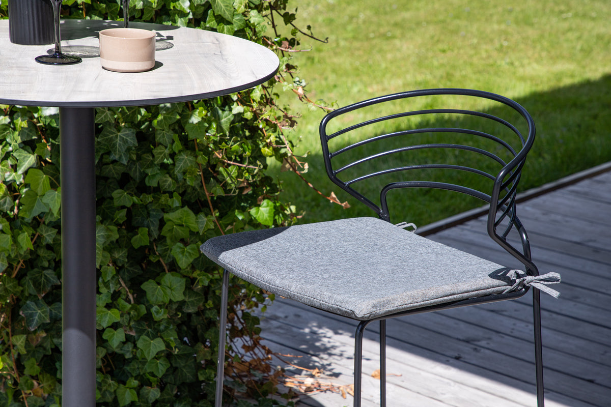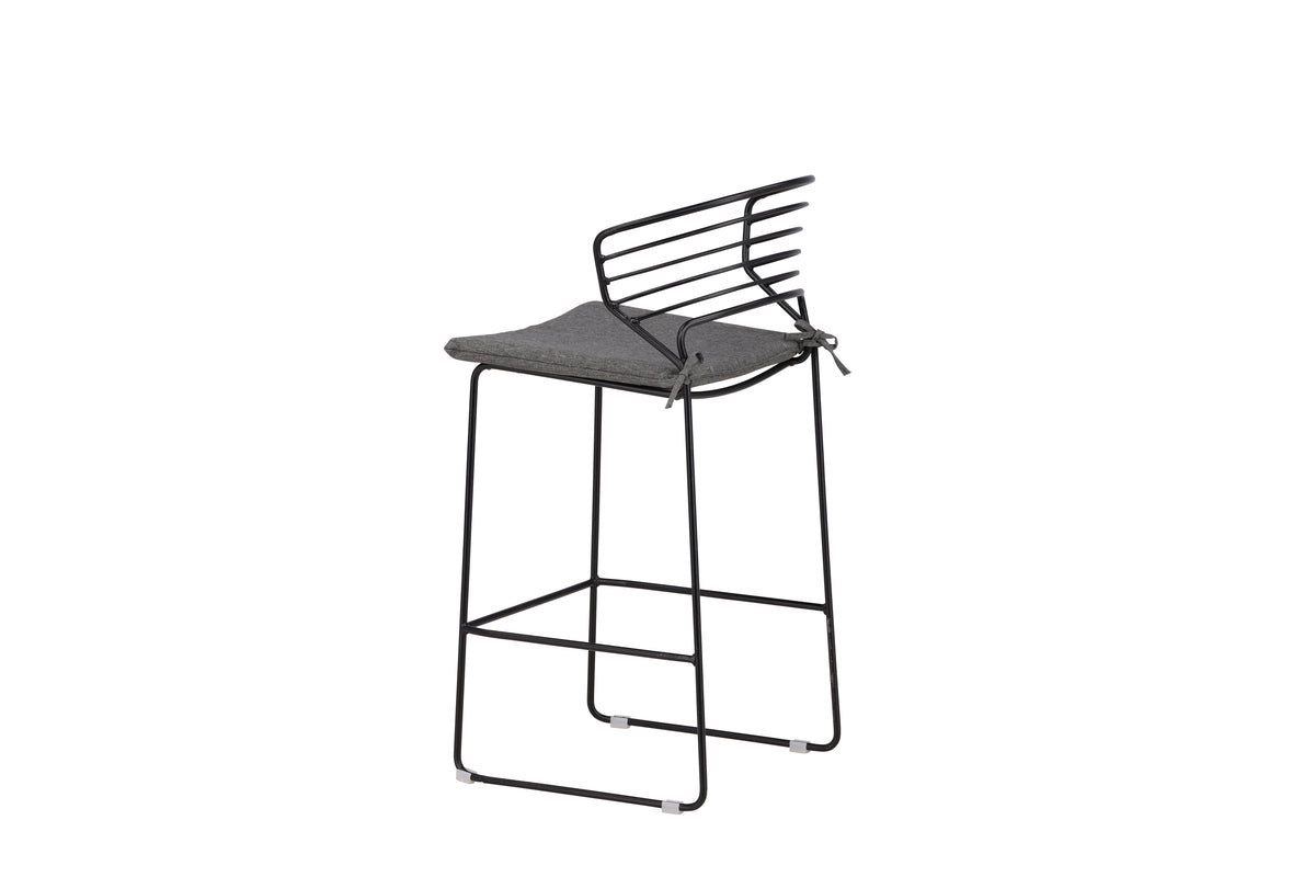 Barstolen fra Milano serien gør et imponerende indtryk og vil skabe et moderne blikfang på din terrasse! Det skandinaviske design er trendy med sine bløde nordiske former. Sædet er blødt polstret i grå polyesterstof, og benrammen er stilfuldt slank i sort stål med en lav ryg og integreret fodstøtte for ekstra komfort. Lige så komfortable som de er iøjnefaldende, ser disse barstole fantastiske ud ved barbordet på terrassen! Stolen er stabelbar.