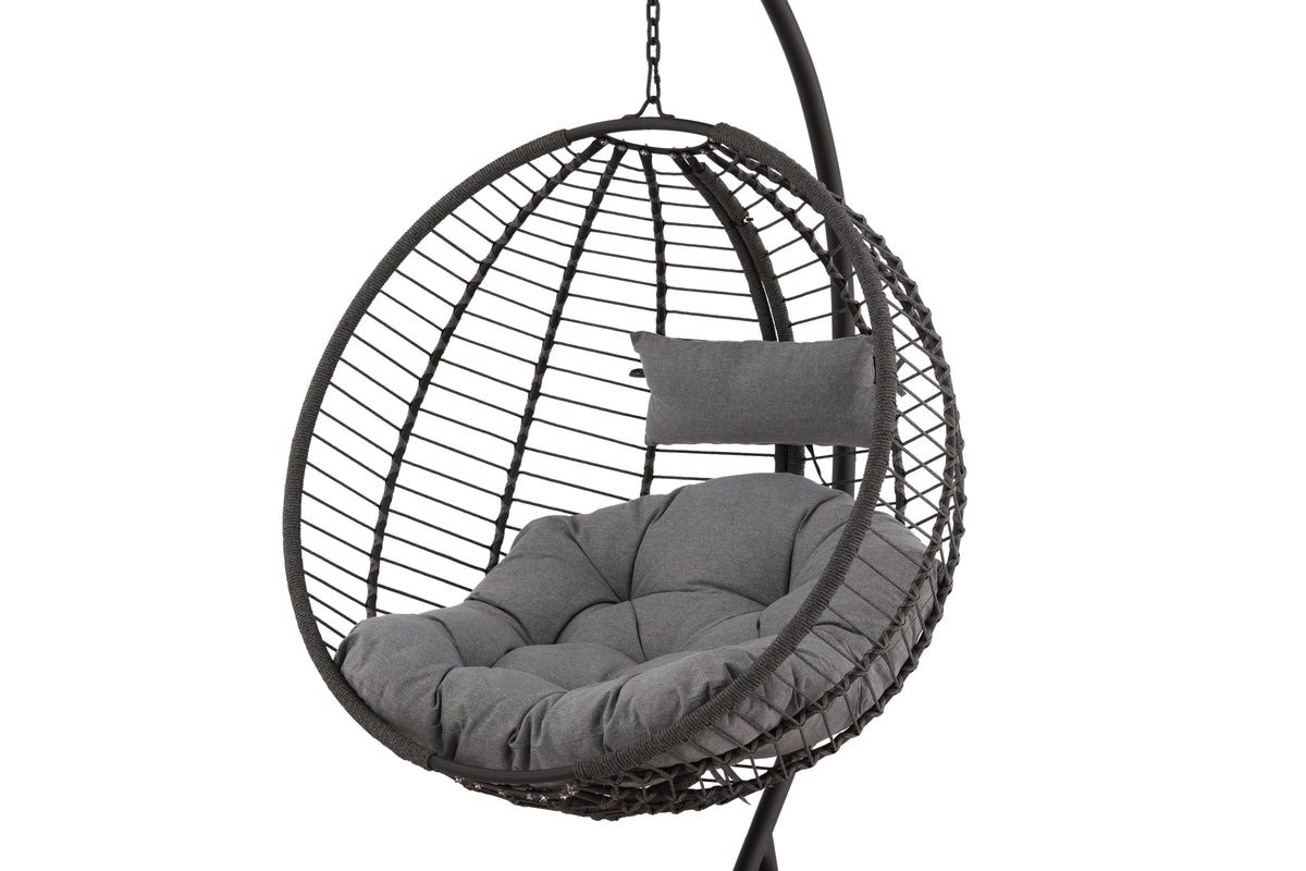 Bacolod fås i en tidløs sort farve, der passer perfekt ind i din have eller på din terrasse. Den hænger praktisk i en stand, hvilket giver dig friheden til at placere den hvor som helst i din have. Skab dit eget afslappede hjørne i solen eller skyggen, lige som du foretrækker.