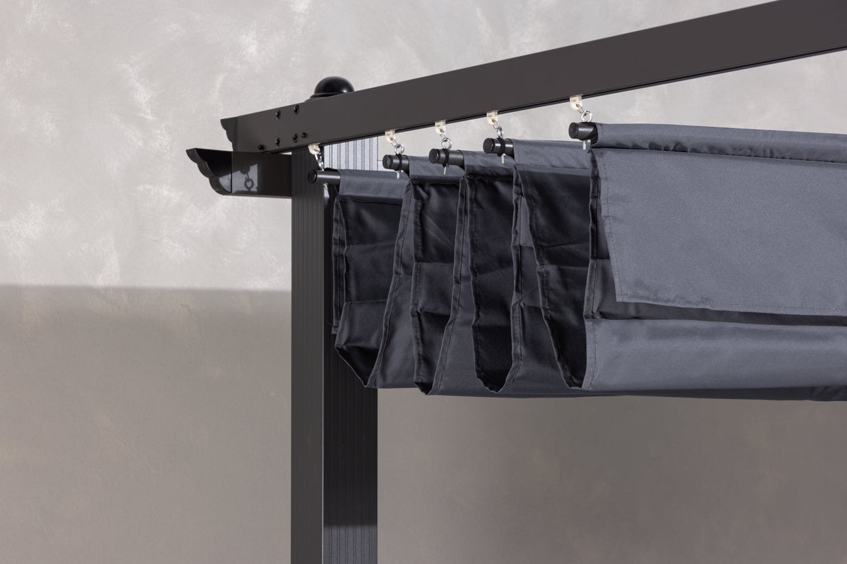 Sommerens nye yndlingshjørne? Med en pergola er det let at indramme terrassen og skabe noget unikt. Lazio har en ramme i aluminium og en tagdel i polyester. Tag den ned, når den ikke er i brug, og sørg for at opbevare den tørt og beskyttet. Lazio tilbyder holdbare pergolaer i forskellige farver, så de bedst kan imødekomme dine behov. Her i en lækker grå farve. Mål: 300x300x250 cm.