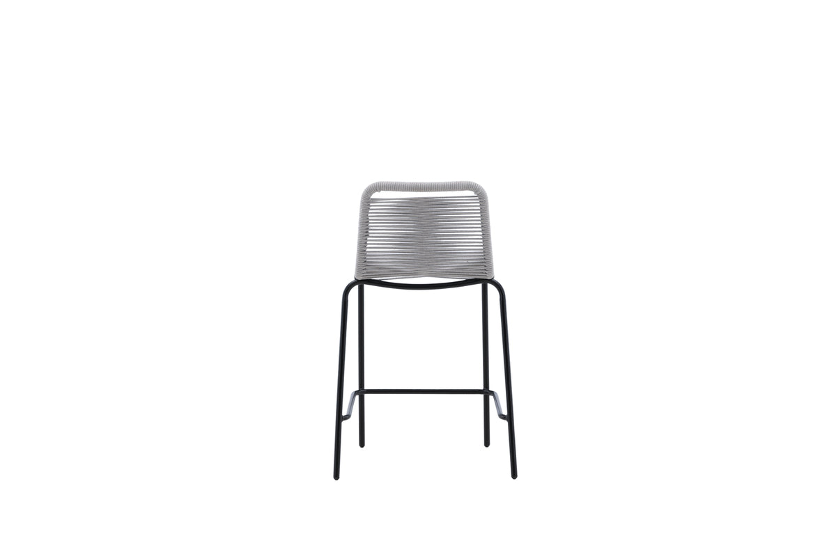 Lindos barstol i sit trendsikre og stilrene design passer perfekt sammen med andre udendørsmøbler. Takket være sit slidstærke materiale i reb og behagelige grå farve er den blevet en favorit på mange terrasser. Match med et lækkert barbord og nyd måltider udendørs i sommer! Stolen er stabelbar.