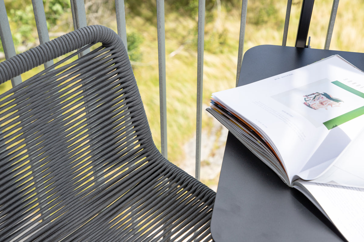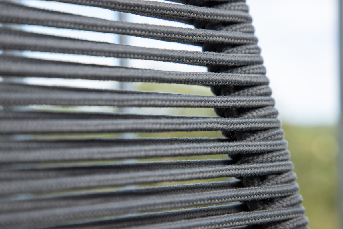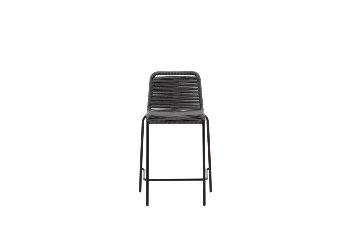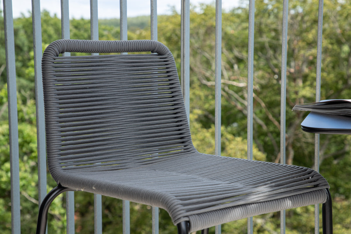 Lindos barstol i sit trendsikre og stilrene design passer perfekt sammen med andre udendørsmøbler. Takket være sit slidstærke materiale i reb og tidløse sorte farve er den blevet en favorit på mange terrasser. Match med et lækkert barbord og nyd måltider udendørs i sommer! Stolen er stabelbar.