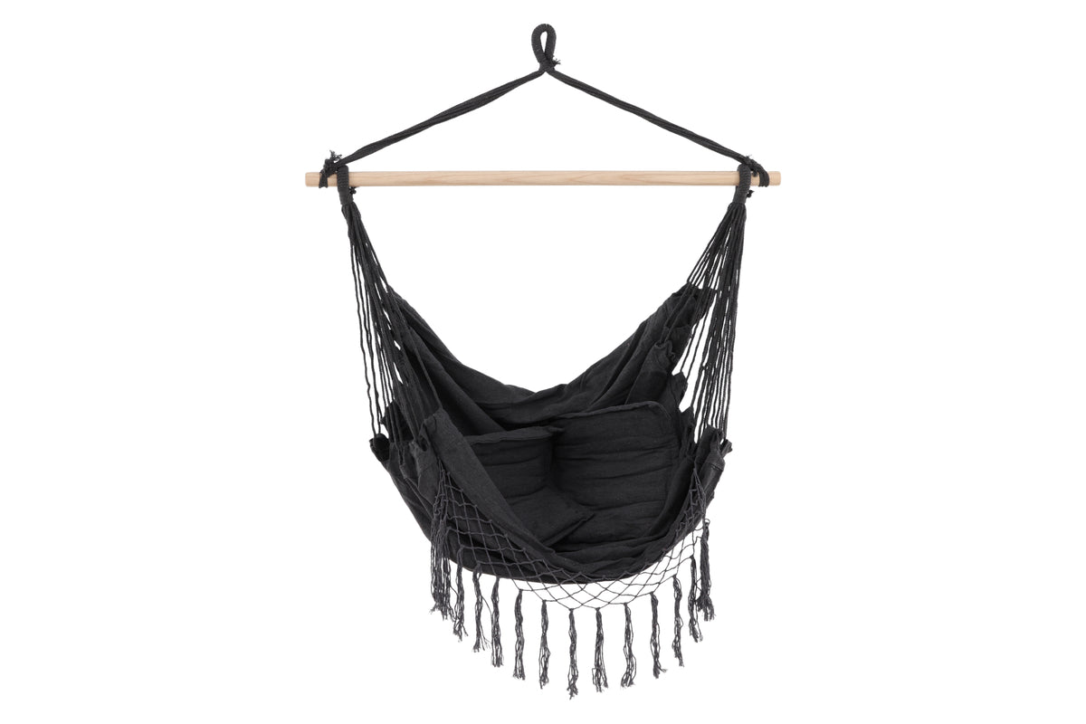 Denne hængekøje tilbyder dig et fredeligt og komfortabelt sted at nyde i haven. Culasi har et indbydende design og trendy design med et sæde i grå polyester og bomuldsstof. De holdbare reb holdes oppe af en dekorativ træstang, som bliver et stilfuldt detalje i blikfanget. Her kan du gynge og nyde stille alenetid!