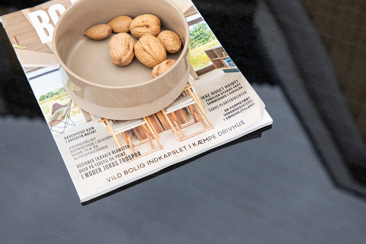 Barbordet Alo løfter din terrasse til nye højder! Dette barbord har holdbart materiale i kunstflet, stilfuldt design og klassisk design med lige nordiske former. Toppladen er lavet af glas og bidrager til en stilfuld elegance. Match med barstole fra samme serie og få en komplet spisestue til det udendørs liv om sommeren!