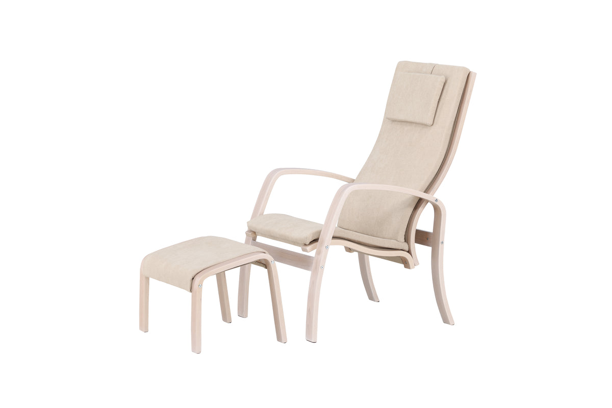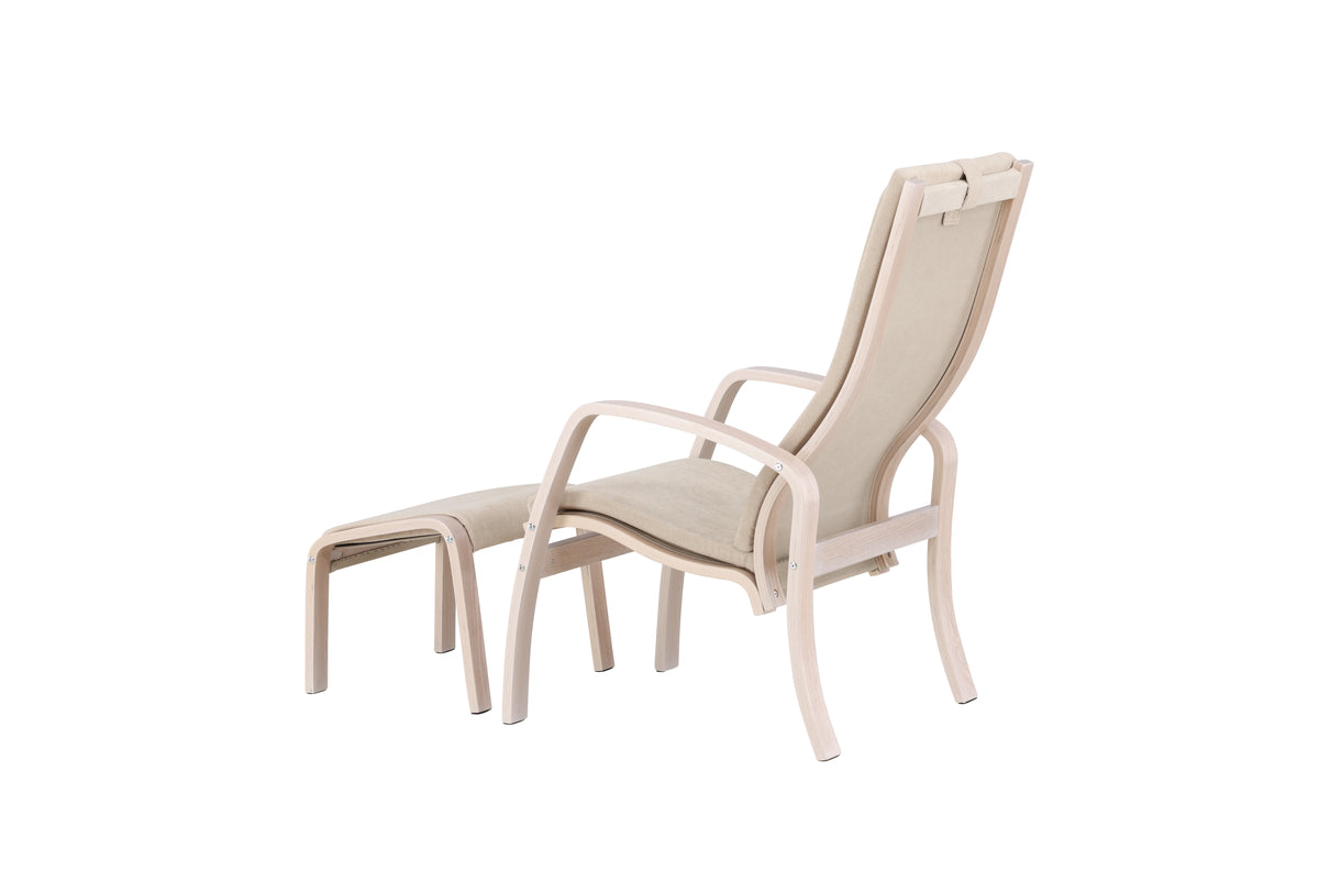 Læn dig tilbage og nyd en lang dag i Grötö lænestol med matchende fodskammel! Dens plywoodramme i whitewash sammen med det lysegrå polyesterbetræk skaber en elegant og naturlig følelse, som smelter ind i ethvert rum. Med sine svungne former og omhyggeligt udformede detaljer er Grötö både funktionel og stilfuld. De lige former på puderne bidrager til en moderne følelse og komplementerer lænestolens elegante design. Oplev den harmoniske forening af materialer, farve og form og skab en indbydende oase i dit hjem med Grötö lænestol og fodskammel.