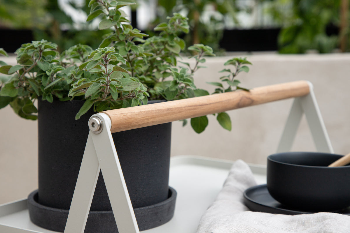 Clarin - det perfekte kaffebord til sommerens frie øjeblikke! Dette smukke sidebord i beige stål har en kvadratisk top og stilfuldt smalle ben, der glat mødes i et håndtag øverst lavet af dekorativ teak. Det minimalistiske og skandinaviske design giver dig et fremragende sidebord, der står tidens prøve. Gør dig klar til sommerens udendørsliv!