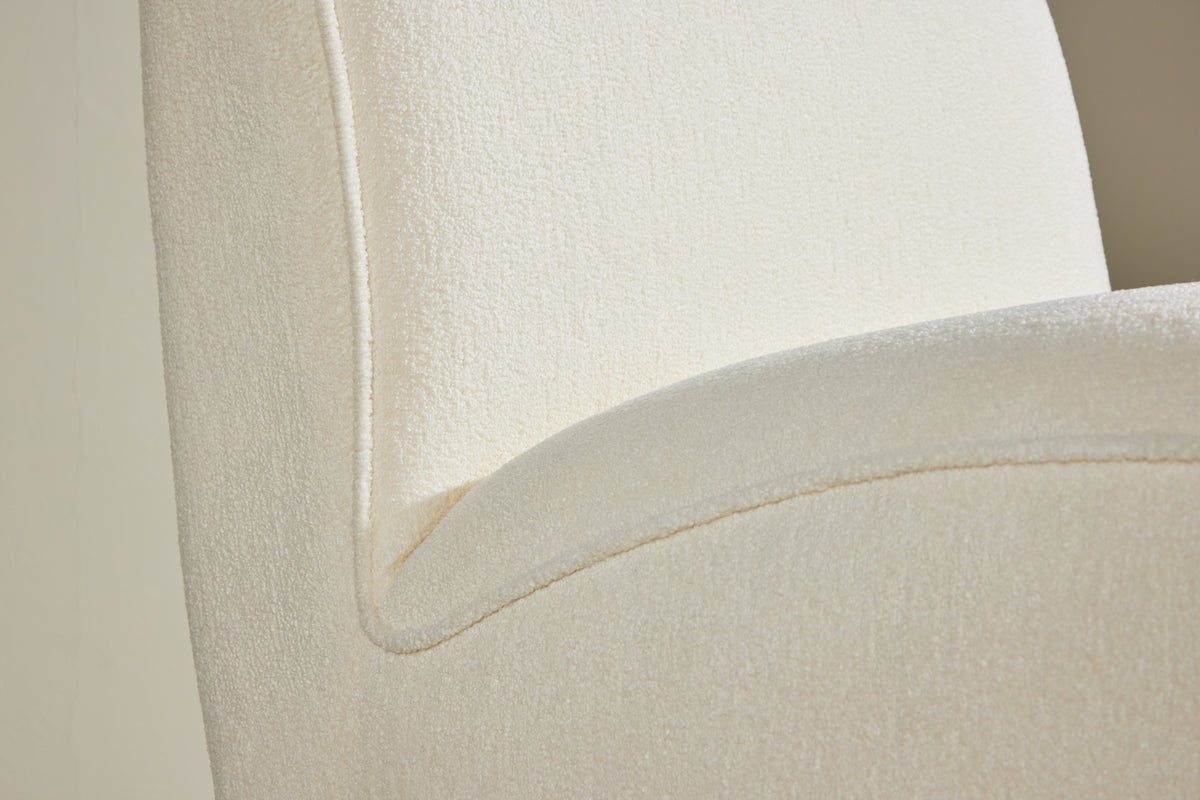 Oplev sofistikeret komfort og tidløs elegance med My lounge stolen, polstret i luksuriøst hvidt bouclé materiale. Denne stol er en perfekt balance mellem form og funktion, designet til at være en central del af dit interiør, mens den tilbyder uovertruffen komfort. Det hvide bouclé materiale giver My stolen en blød og indbydende tekstur, samtidig med at det tilføjer en eksklusiv og moderne fornemmelse til rummet. Bouclé, med sin karakteristiske ujævne overflade og bløde finish, giver stolen en subtil, men distinkt charme, der glider ubesværet ind i både minimalistiske og mere dekorative miljøer. Med sine afrundede former og generøse sædedybde er My lounge stolen designet til at indbyde til afslapning. Den tilbyder omsluttende komfort, der gør den til det perfekte sted at slappe af med en bog, nyde en kop kaffe eller blot hvile efter en lang dag. My stolen er ikke blot et møbel, men et statementspiece, der hæver stilen i dit hjem. Lad det hvide bouclé forvandle dit rum til en sofistikeret og rolig oase, hvor hver detalje er designet til at give dig en følelse af luksus og komfort.