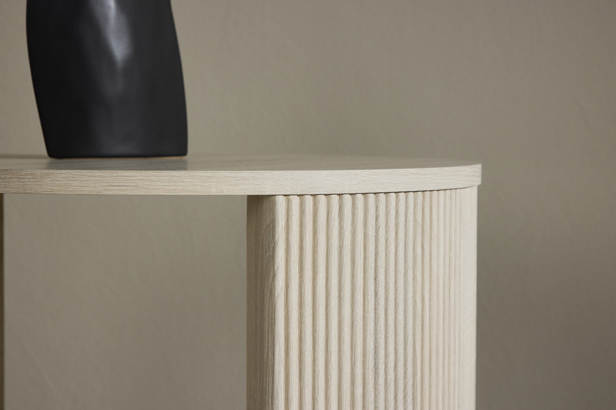 Bristol Sofabordet er et slankt og alsidigt møbel, der kombinerer enkelhed med sofistikeret design. Fremstillet af MDF og afsluttet i en hvidvask farve, tilføjer Bristol en lys og harmonisk følelse til dit hjem. Med sin runde form og kompakte dimensioner på 60x45 cm er Bristol det perfekte sofabord til mindre rum eller som et elegant accentstykke i større værelser. Den afrundede design skaber et blødt og indbydende udseende, der komplementerer både moderne og klassiske indretningsstile. Bordets neutrale farve gør det nemt at kombinere med andre møbler og dekorationer. Brug Bristol som en overflade til kaffe, magasiner og dekorative genstande, eller lad det tage centrum som et stilfuldt fokuspunkt i din stue. Bristol Sofabordet er et tidløst supplement, der forbedrer dit rum med understated elegance og praktisk funktionalitet.