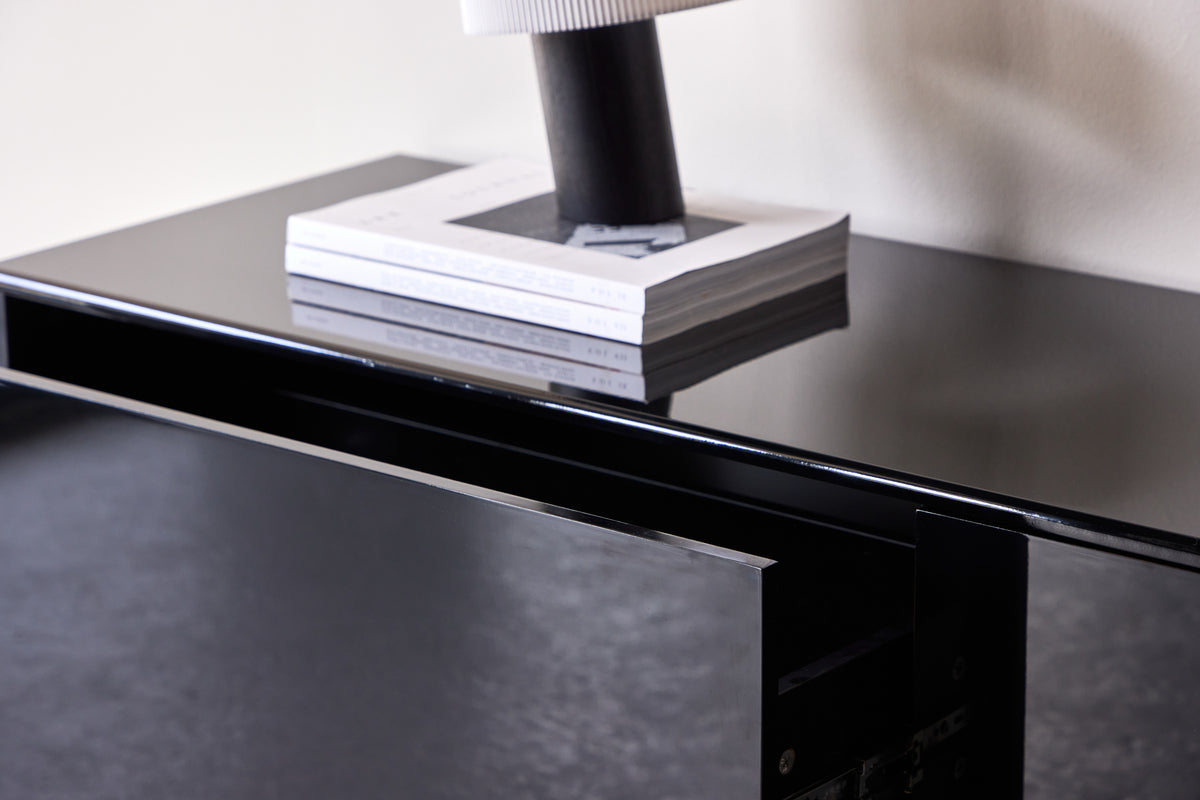 Giv din stue et moderne og elegant præg med Fristad – en slank TV-bænk designet til det bevidste hjem. Fremstillet af holdbar MDF og afsluttet i en blank sort belægning, udstråler Fristad en tidløs og sofistikeret følelse. TV-bænken er helt benløs for et minimalistisk look, der smelter smukt ind i moderne interiører. De to udtrækskuffer tilbyder rummelig og praktisk opbevaring til alt fra fjernbetjeninger til spillekonsoller og kabler – perfekt til at holde tingene ryddelige og skabe et rent indtryk.