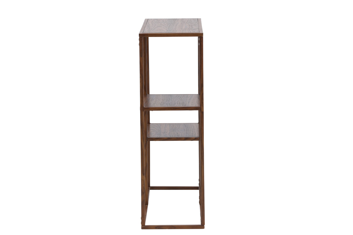 Hylden har to åbne niveauer i forskellige højder og en topflade, hvilket gør den både praktisk og dekorativ. Den varierede højde giver plads til alt fra bøger og dekorationer til planter eller hverdagsting.