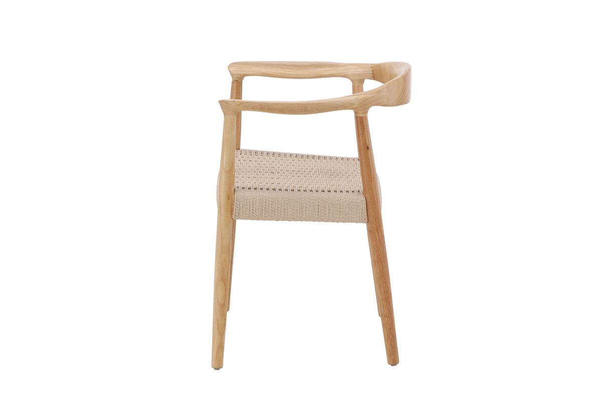 Sig hej til Lovön, en slank og indbydende stol. Med en ramme lavet af gummitræ og et sæde vævet i beige polyesterreb, kombinerer Lovön klassiske materialer med moderne design. Stolen tilbyder stor siddekomfort og fungerer lige så godt omkring spisebordet som i et lyst solrum eller et afslappet indendørshjørne. Dens neutrale farvepalet og rene silhuet gør Lovön nem at integrere i forskellige indretningsstile – fra skandinavisk minimalisme til mere rustikke eller boheme indstillinger.