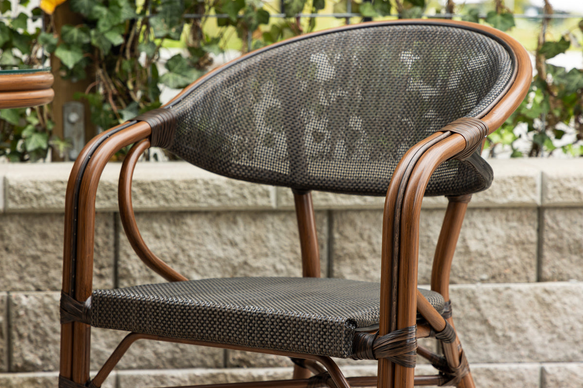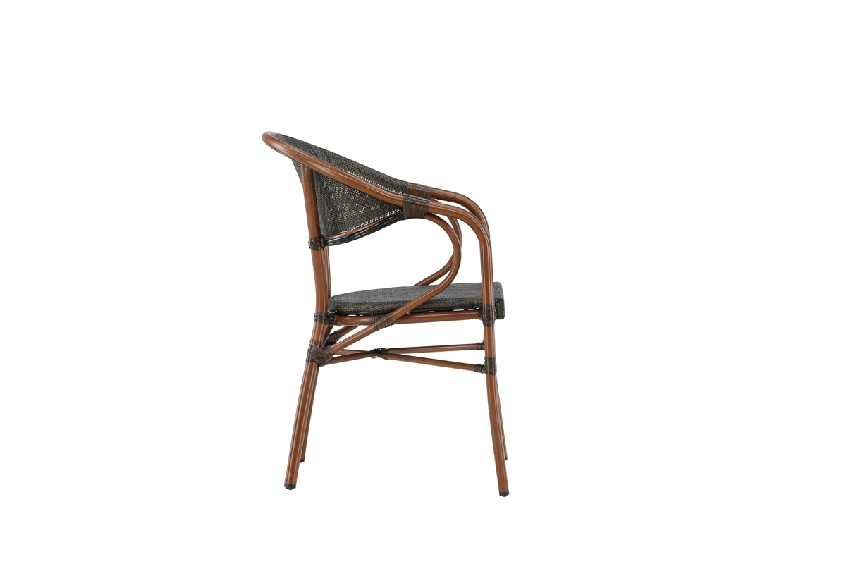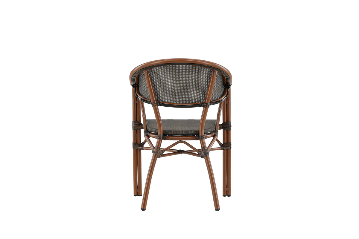 Oplev komfort og elegance i hvert øjeblik med Vila Real caféstolen. Denne smukke stol, med sit tidløse udseende og elegante vintagefølelse, vil omfavne dig med stil og komfort. Stolen har et smagfuldt armlæn, der giver ekstra komfort, hvilket gør den perfekt til lange samtaler, kaffeøjeblikke og afslappede udendørs måltider. Dens brune ramme og sorte sæde skaber en elegant kontrast, der giver dit udendørs rum en sofistikeret og indbydende atmosfære. Den er praktisk og nem at rengøre, og dens stil gør den til et fremragende valg til enhver udendørs indstilling.