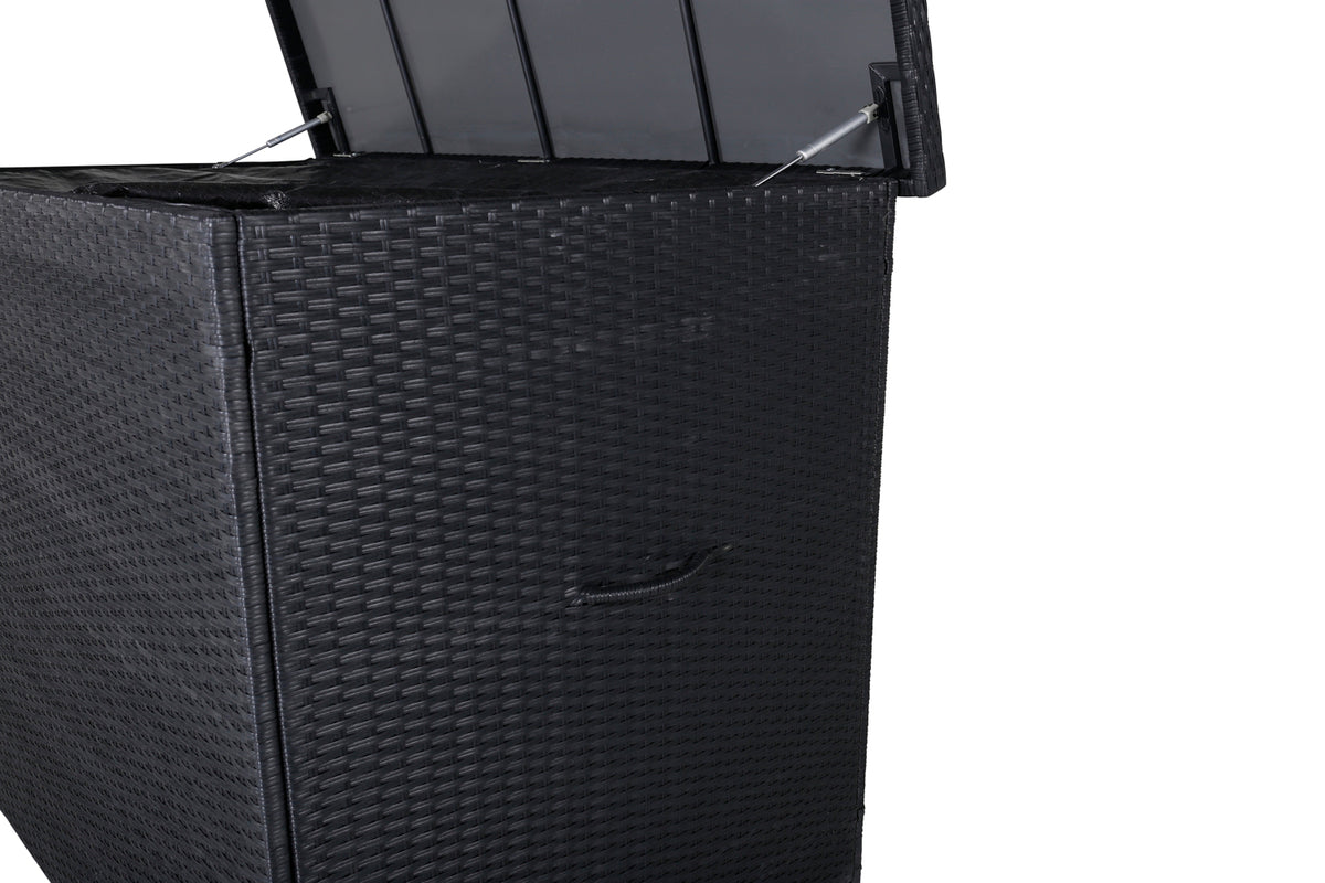 Efterlad ikke dine hynder ude i regn og slud! Med en flot og praktisk hyndeboks i sort farve fra serien Amazon beskytter du hynderne og kan forlænge levetiden. Den fungerer også glimrende til opbevaring af øvrige udendørsartikler - et smart supplement til terrassen simpelthen!