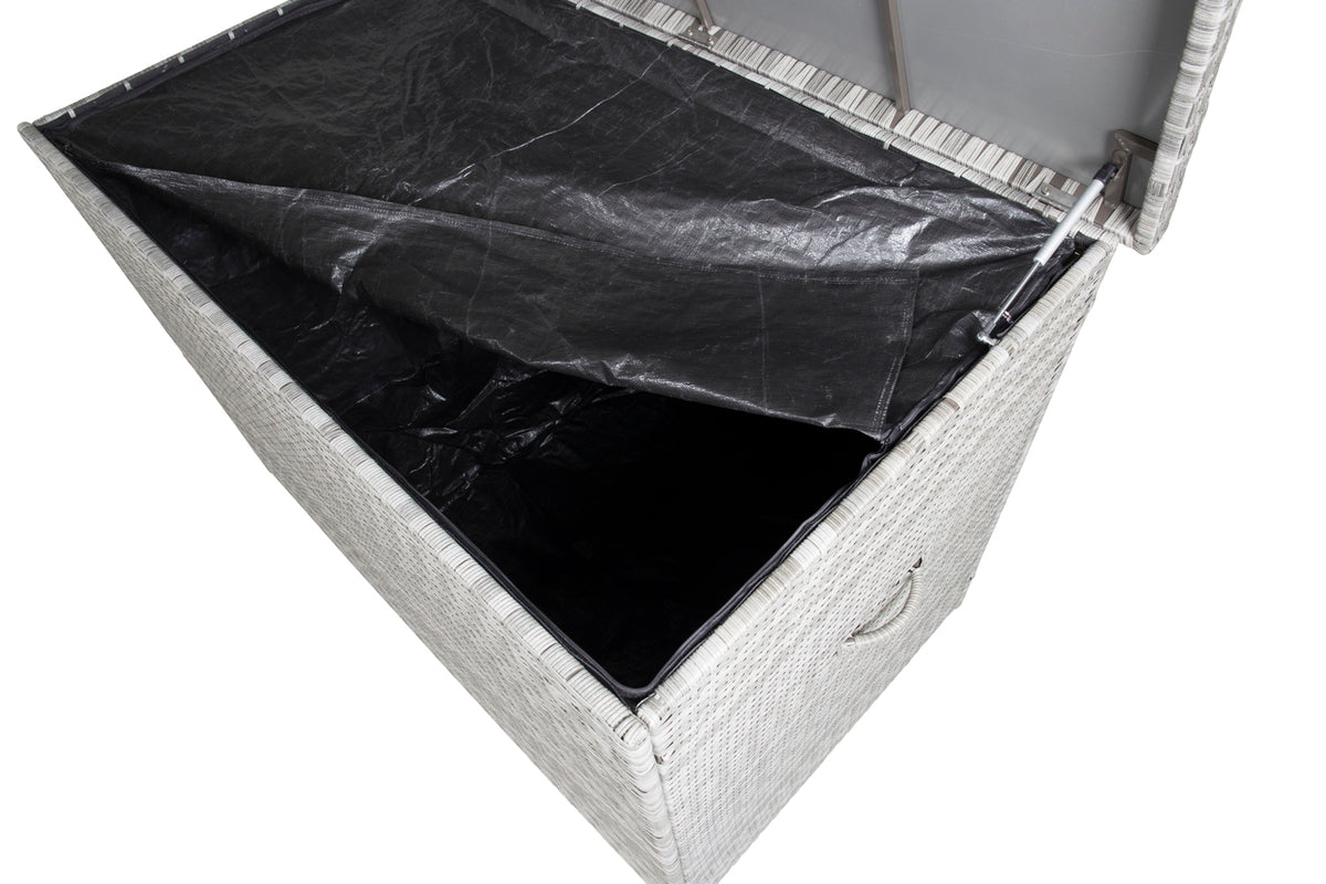 Efterlad ikke dine hynder ude i regn og slud! Med en flot og praktisk hyndeboks i grå farve fra serien Amazon beskytter du hynderne og kan forlænge levetiden. Den fungerer også glimrende til opbevaring af øvrige udendørsartikler - et smart supplement til terrassen simpelthen!