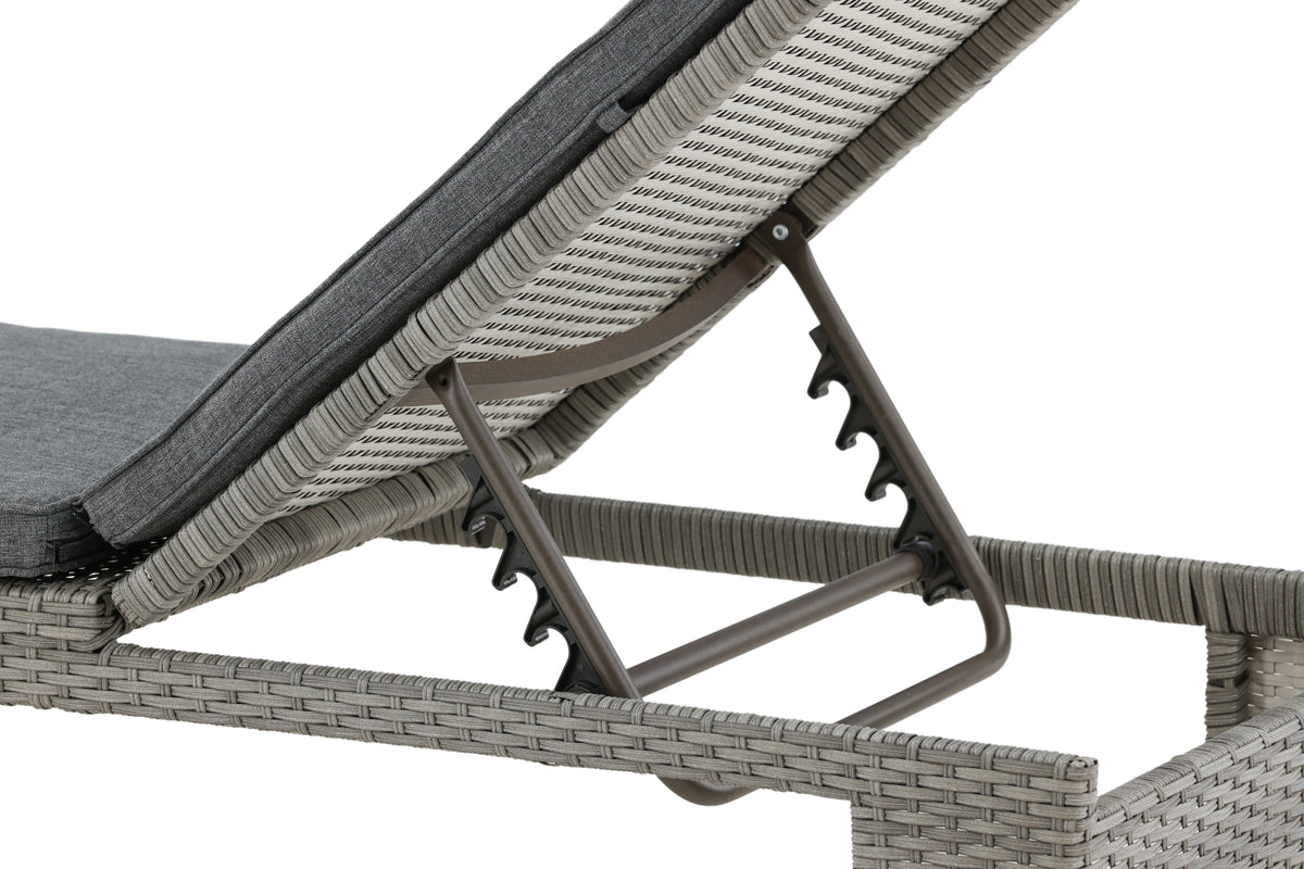 Stilfuldt og luksuriøst design gør denne solseng fra London serien til en behagelig øjenfanger på din terrasse. Her får du en grå solseng med grå pude, hjul og justerbar rygstøtte for den optimale hvileposition. Solsengen er lavet af kunstig rattan, hvilket gør den holdbar i et udendørs miljø. Robust, stabil og komfortabel - her kan du nyde frie stunder på sommerens solrige dage. Plejevejledning: Konstrite er et plastmateriale, der er perfekt til vores skandinaviske klima. Materialet er UV-bestandigt og kan modstå vejr og vind. At det er UV-bestandigt betyder, at møblerne ikke falmer, men vi anbefaler altid at opbevare møblerne under en møbelbeskyttelse eller ellers tørt og køligt for at forlænge levetiden.