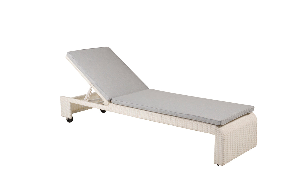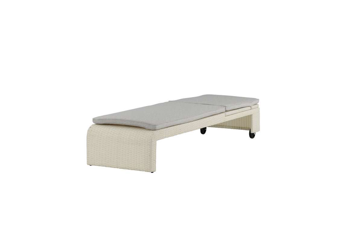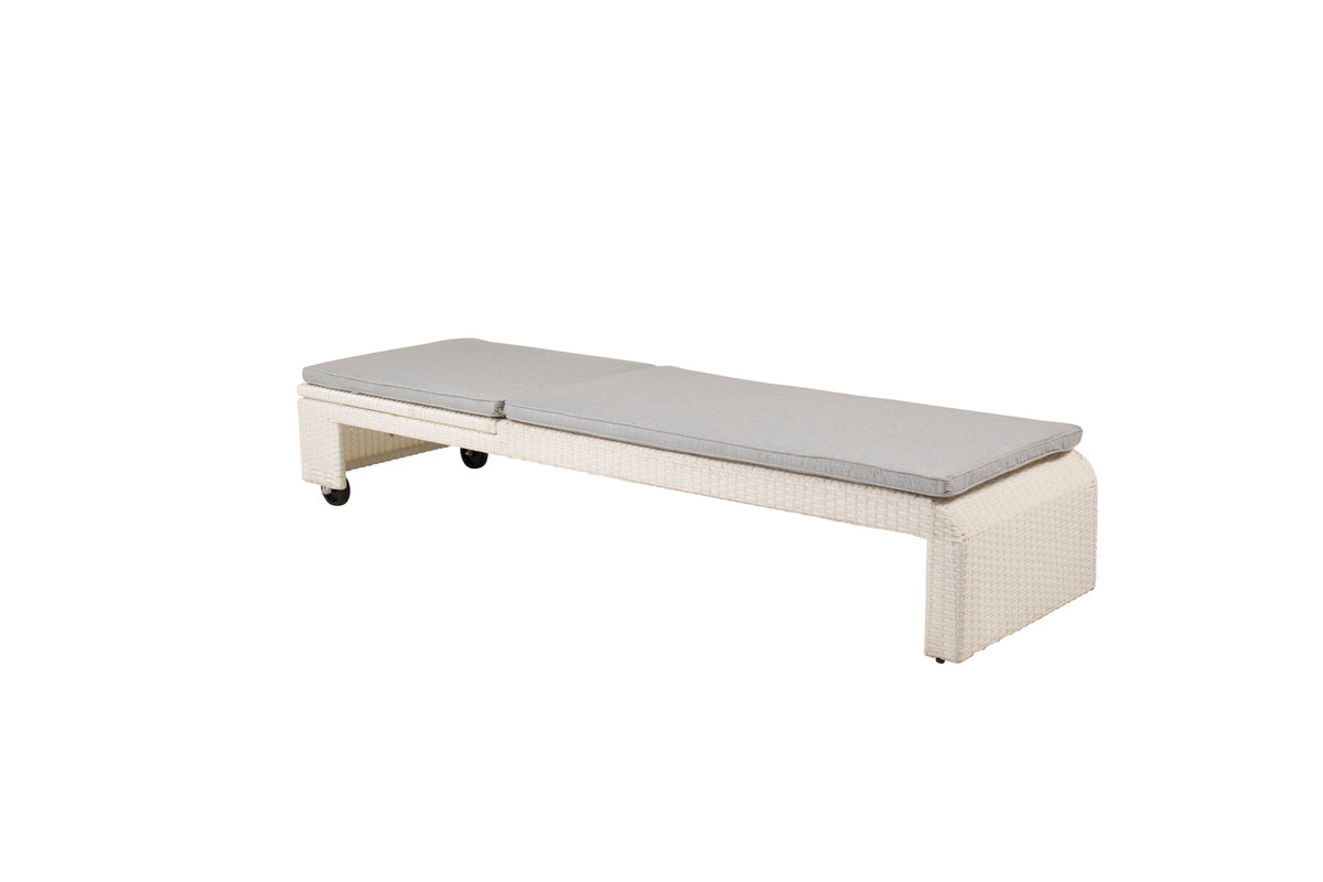 Moderne, stilfuld og pompøs solseng fra London serien skaber en behagelig øjenfanger på din terrasse. Her får du en creme-hvid solseng med grå pude, hjul og justerbar rygstøtte for den optimale hvileposition. Solsengen er lavet af sort kunstig rattan, hvilket gør den holdbar i et udendørs miljø. Her kan du nyde frie stunder på sommerens solrige dage! Plejevejledning: Konstrite er et plastmateriale, der er perfekt til vores skandinaviske klima. Materialet er UV-bestandigt og kan modstå vejr og vind. At det er UV-bestandigt betyder, at møblerne ikke falmer, men vi anbefaler altid at opbevare møblerne under en møbelbeskyttelse eller ellers tørt og køligt for at forlænge levetiden.