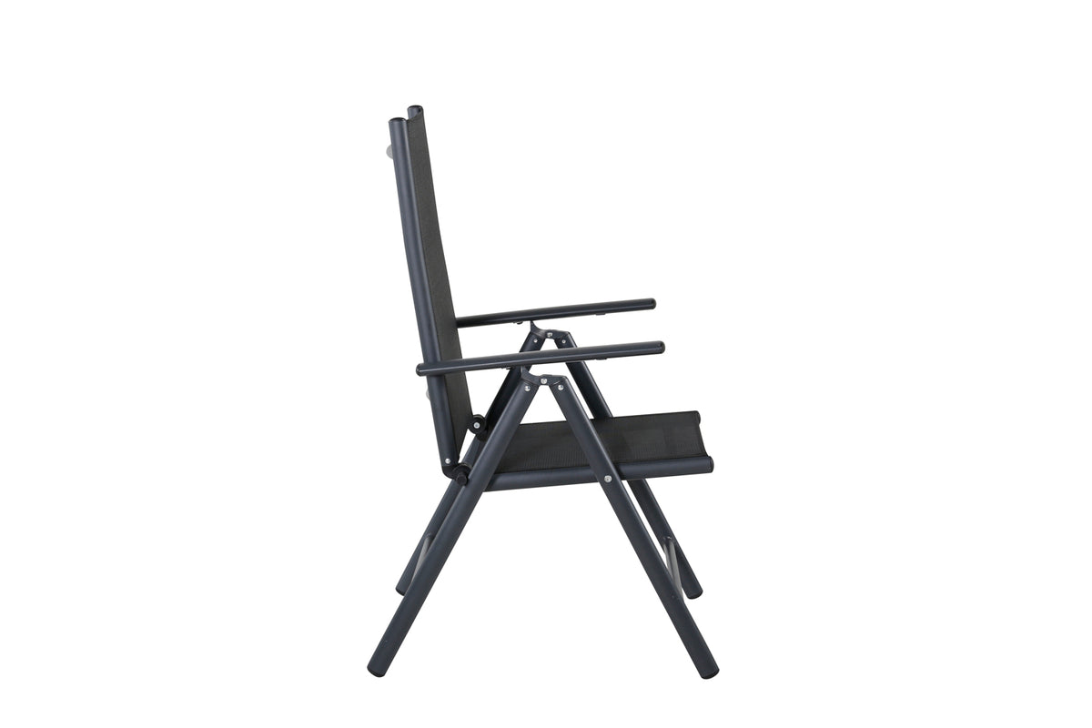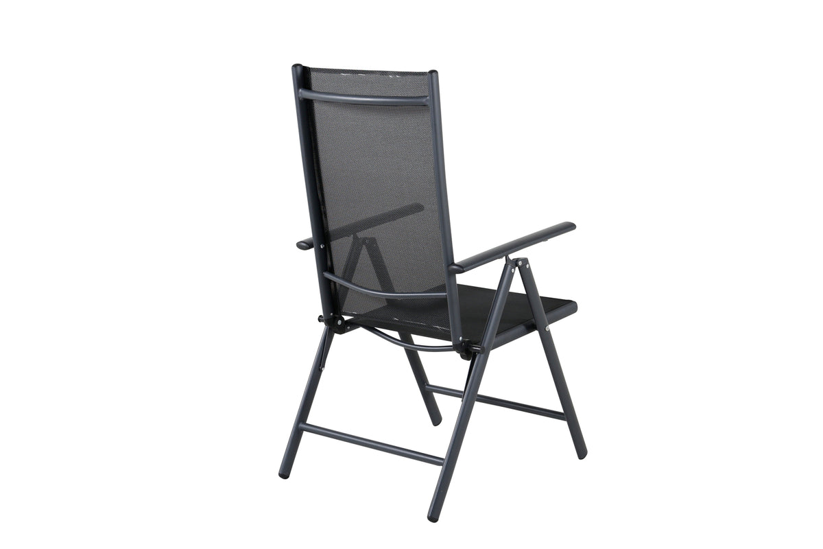 Sid afslappet i sommer og nyd hyggelige måltider udendørs! Break er en praktisk foldestol i tidløs sort farve, der passer ind på de fleste terrasser. Stolens 5-positionsindstilling og armlæn gør den meget komfortabel og anvendelig, både som spisebordsstol og til afslapning. Møblér omkring et matchende spisebord og inviter til mange sociale stunder.