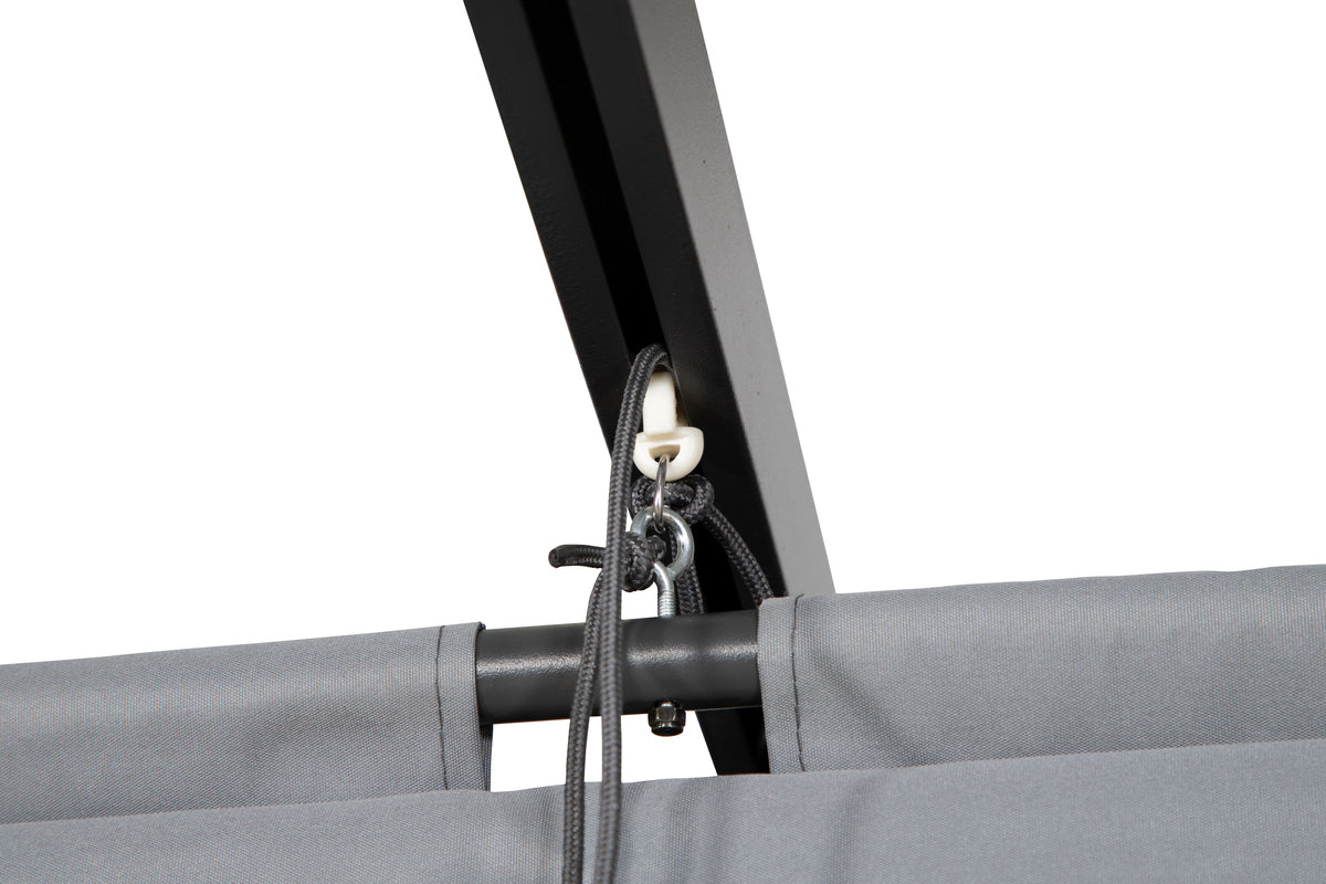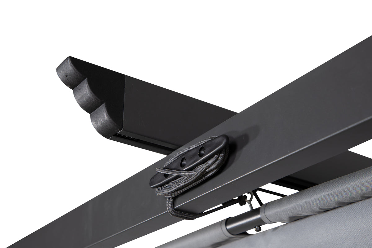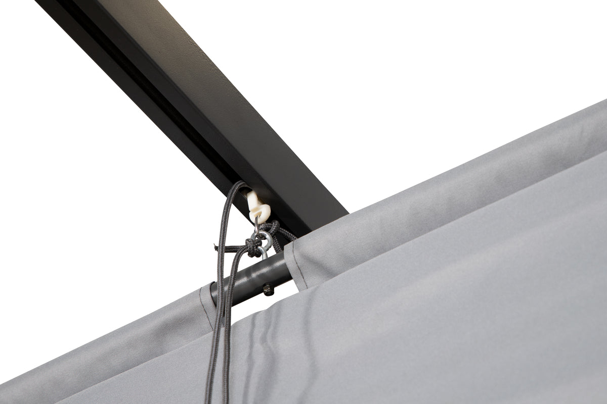 Lazio er vores fantastiske pergola med polyesterstoftag, der kan tages af om nødvendigt - perfekt til alle tidspunkter af dagen og vejrskift! Rammen er lavet af sort aluminium, og stoffet er i grå polyester - følg vores vedligeholdelsesråd, så får du en pergola til balkonen, der holder over tid. Saml dine kære, og du får et indrammet middagssted, der helt sikkert vil blive en succes på terrassen!