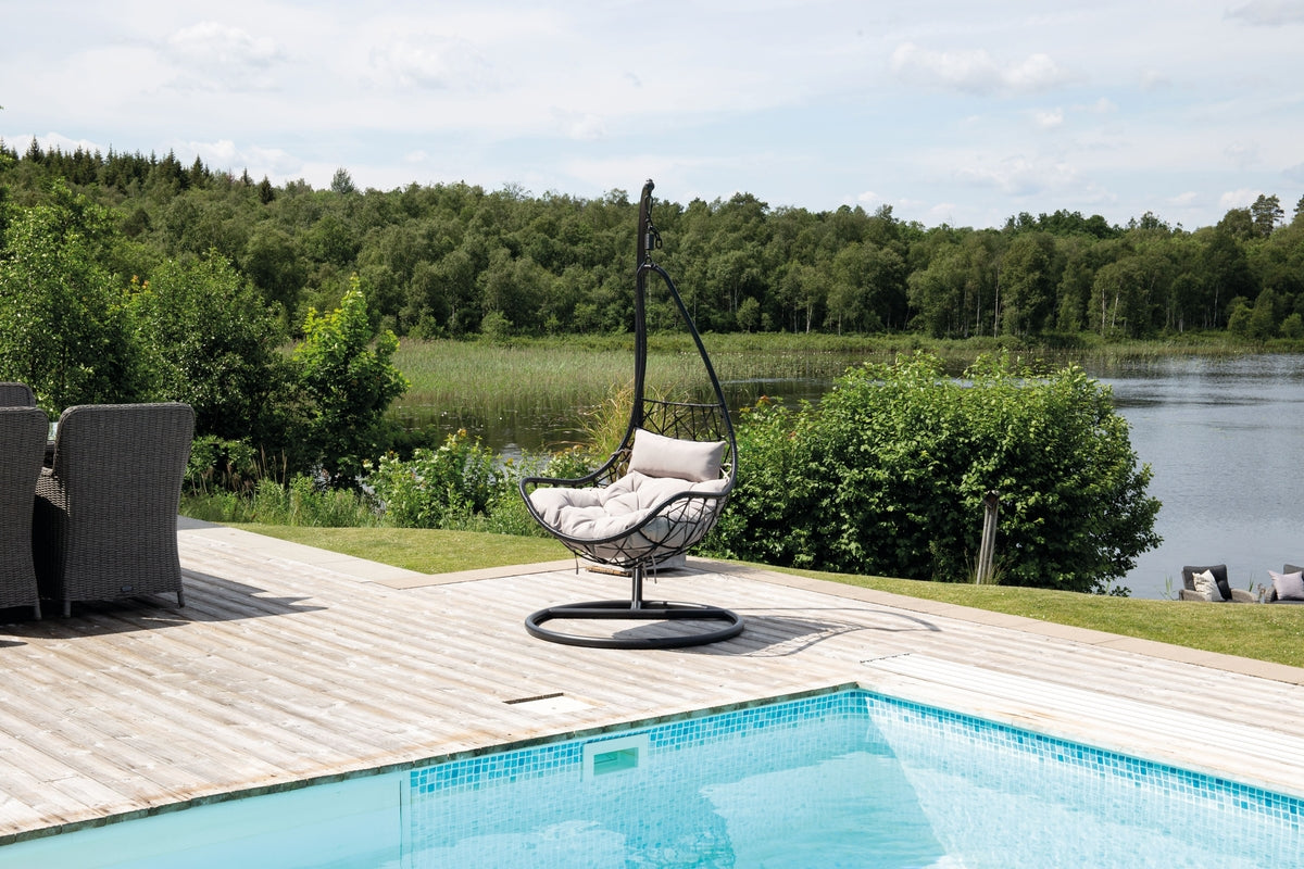 Gør sommeren ekstra speciel i denne lækre hængekøje fra Vide-serien. Designet er velovervejet og designet med et stativ i sort stål og en kurv af kunstig rattan, som inkluderer grå fluffy puder. Indret terrassen med et ægte designikon, der ikke kun vil være et blikfang denne sommer, men også dit nye yndlingssted at slappe af.