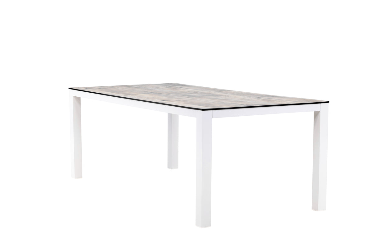 Møblér terrassen i et stilrent look med spisebord Llama! Bordpladen er i let gråmønstret HPL og understellet i hvid aluminium. De lige nordiske former og tidløse kulører giver dig et spisebord, som holder over tid. Bordet er velegnet til udendørs brug og passer derfor udmærket både i haven og i udestuen! Match med et par komfortable spisestole, så får du en komplet spisegruppe til sommerens måltider!