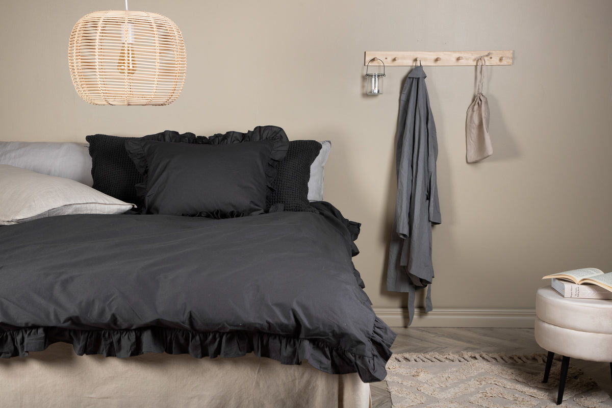 Levi sengesæt er perfekt til dig, der ønsker det lille ekstra dekorative i soveværelset! Sengesættet findes i fire dejlige farver og har en dekorativ flæsekant, det kommer i to dele og er fremstillet i bomuld for en skøn og sval følelse mod kroppen. Alt for at du skal sove rigtig godt!