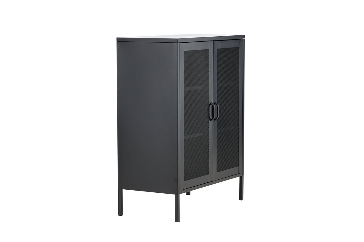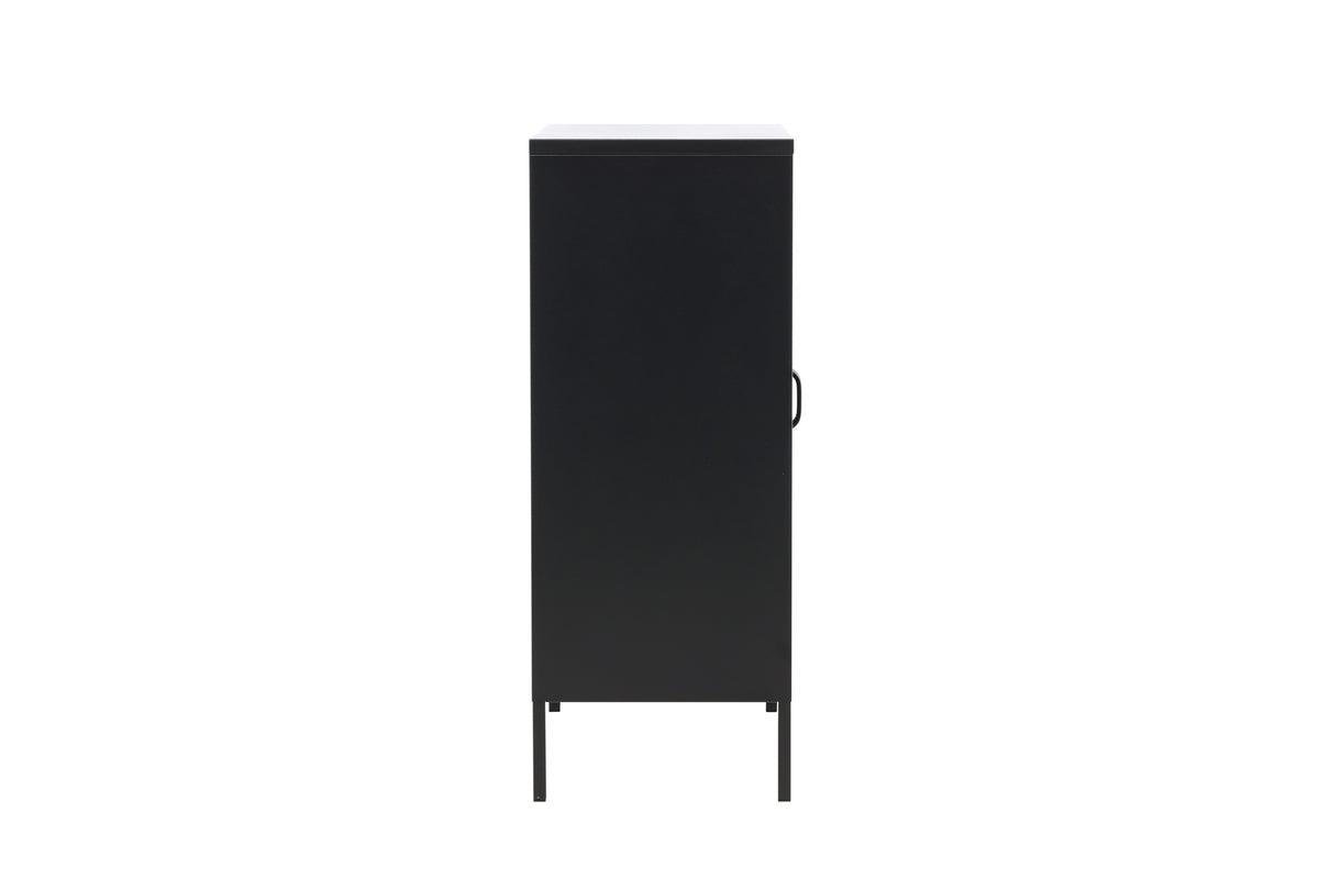Misha er et stilrent skab fremstillet helt i sort stål – et robust og holdbart materiale, der giver en tydelig karakter til rummet. Designet er stramt men udtryksfuldt, perfekt til dig, der kan lide funktionel form med et industrielt udtryk.