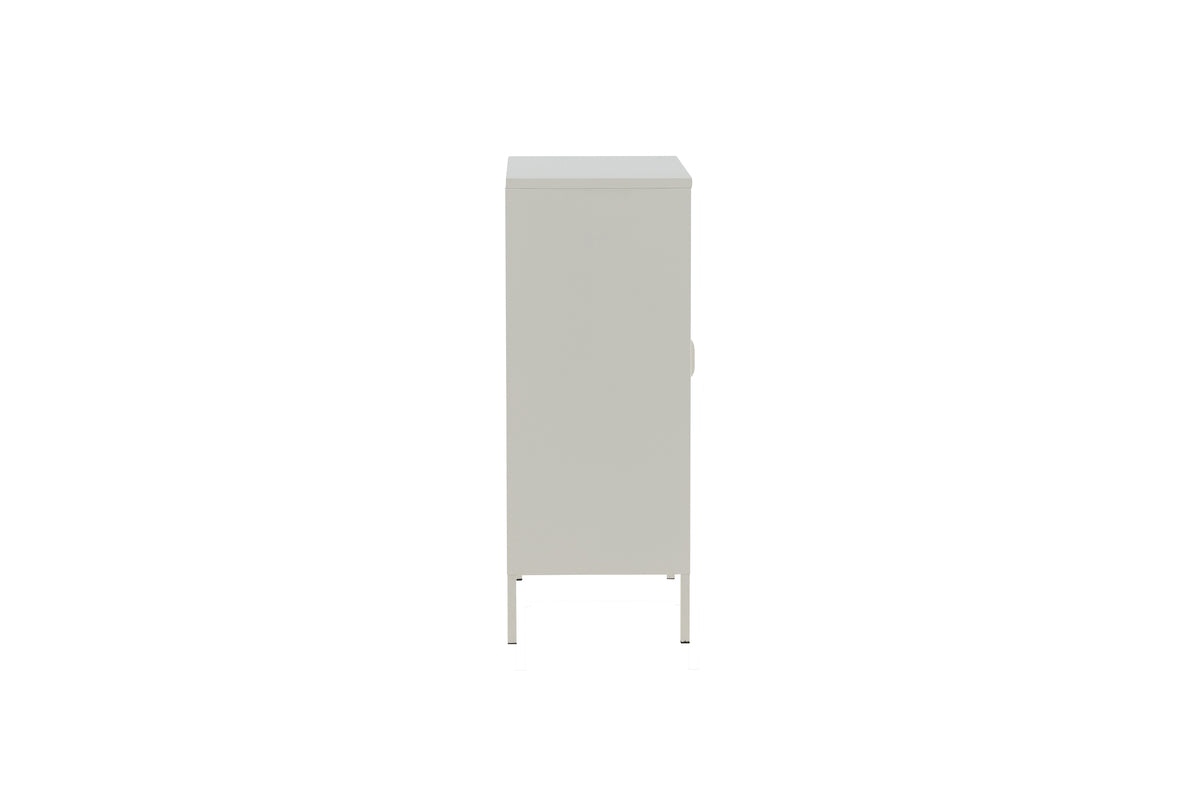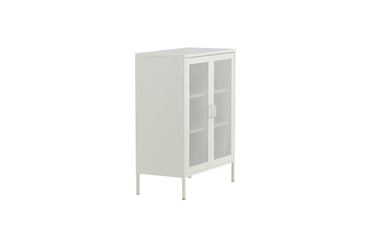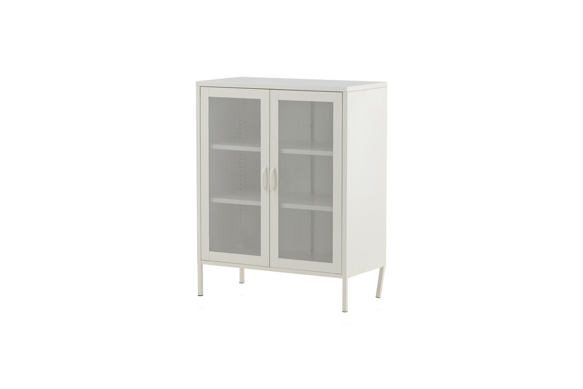 Misha, i et robust industrielt design med lækre netdøre og ben fremstillet i hvidt pulverlakeret stål med 2 smarte hylder til opbevaring. Skabet løftes op af smalle, høje ben, som skaber en luftig følelse og gør det nemmere for støvsugeren. Det perfekte opbevaringsmøbel til alt, hvad du ønsker - fyld med porcelæn, bøger eller smukke dekorationer. Skabets smidige størrelse og elegante ydre gør det let at placere og passer godt ind i de fleste rum i hjemmet, så møbler efter egne behov og ønsker!