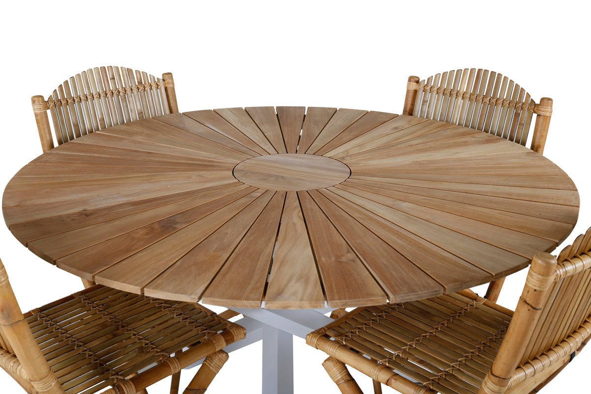 En sommerlig spisegruppe i moderne design! Her kombineres det runde spisebord Mexico med vores lækre bambusstole Cane i tropisk stil. Indret terrassen pænt og smart - her får du og dine gæster mange hyggelige måltider i sommer!