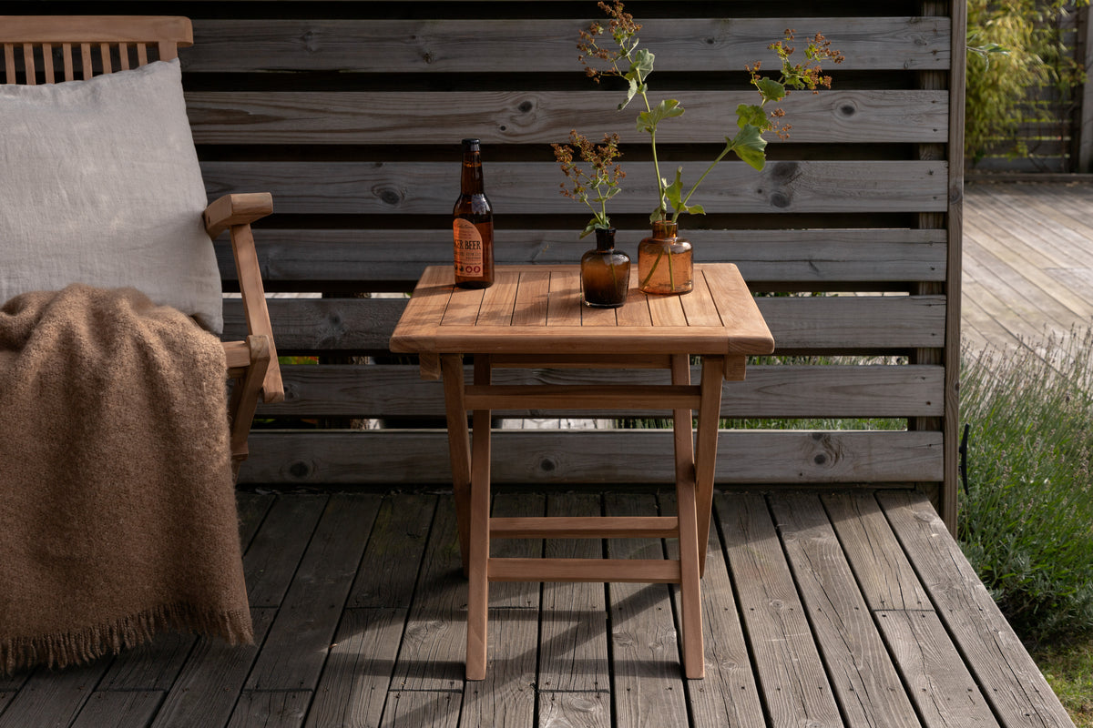 Det perfekte cafébord til sommerens morgenmad eller solrige kaffepauser. Kenya er et kvadratisk cafébord i stilrent teak. Lige så praktisk som iøjnefaldende giver bordet et indbydende indtryk og vil garanteret forsøde udelivet i sommer. Følg vores vedligeholdelsesråd for tips om, hvordan du får dit bord til at holde længe.