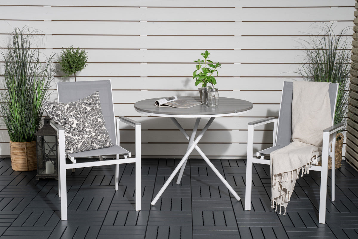 Parma Cafebord 90 Grå + Spisestole Hvid