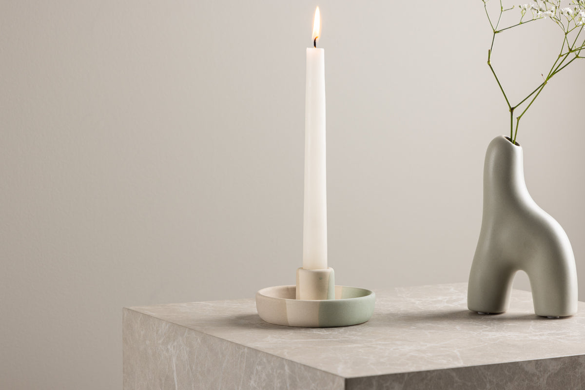 Fremstillet af stentøj er Otis både robust og smuk. Med en diameter på 11 cm har den en perfekt balance mellem diskretion og legende design. Den er ikke bare en lysestage; den er en kunstnerisk skabelse, der tilfører en ekstra dimension af glæde til hvert rum.