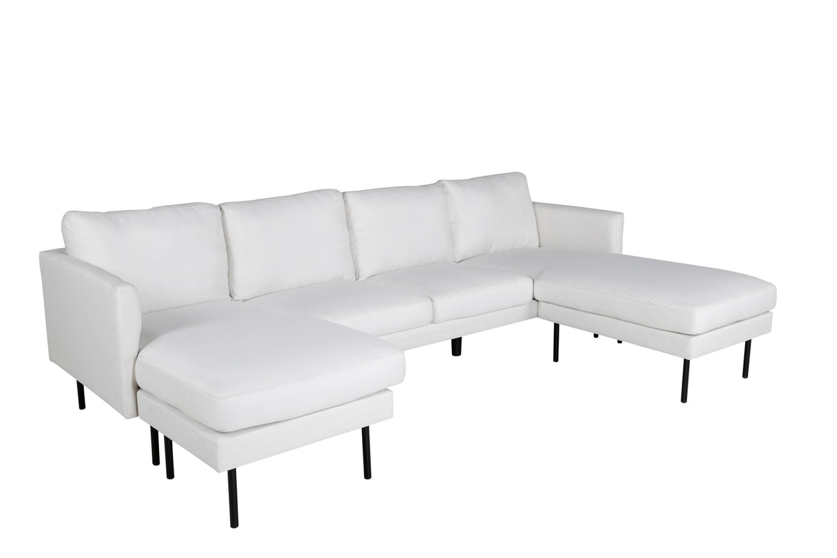 En rigtig soppedrøm - Divanesofa i serien Zoom udstråler luksus og elegance! I frisk lysebeige farve og blød polstring bliver denne sofa hurtigt en favorit efter en lang dag på jobbet. Lige så komfortabel som stilsikker har sofaen et iøjnefaldende design med to divaner, lige nordiske former og generøst med siddepladser til hele familien. De smalle ben er i sort metal. Lad tiden her blive dagens højdepunkt!