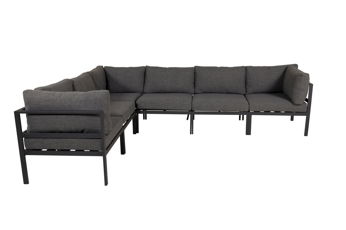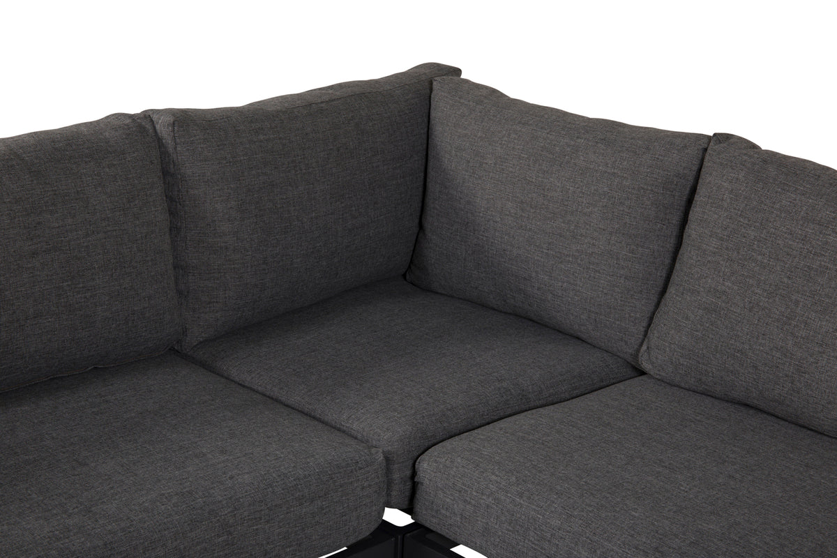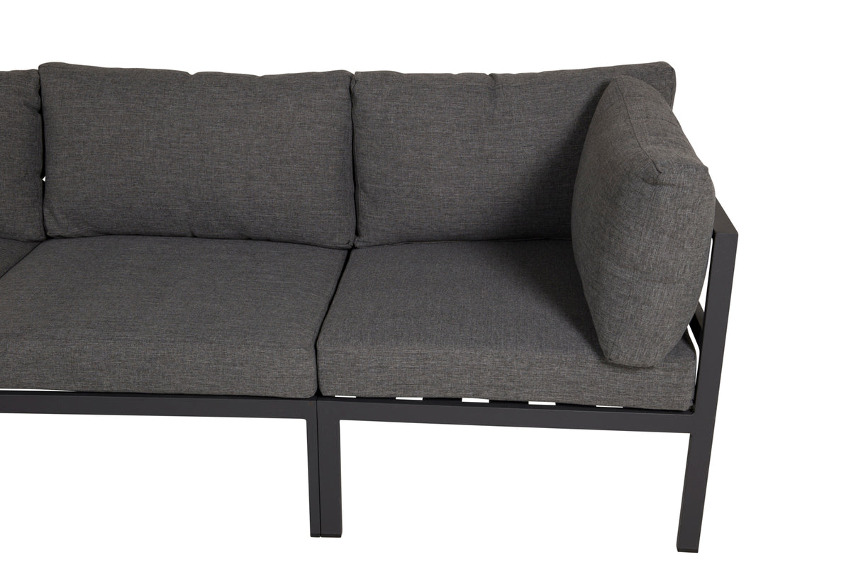 Copacobana er en generøst stor hjørnesofa i sort farve og tilhørende grå hynder, som rummer plads til både nære og kære! Sofaen er opbygget af moduler, og her kan du supplere med et praktisk hjørnemodul for at skabe et mere hyggeligt og behageligt indtryk. Mål: 74x74. Gør dig klar til dejlige sommeraftener i en hyggelig sofagruppe!