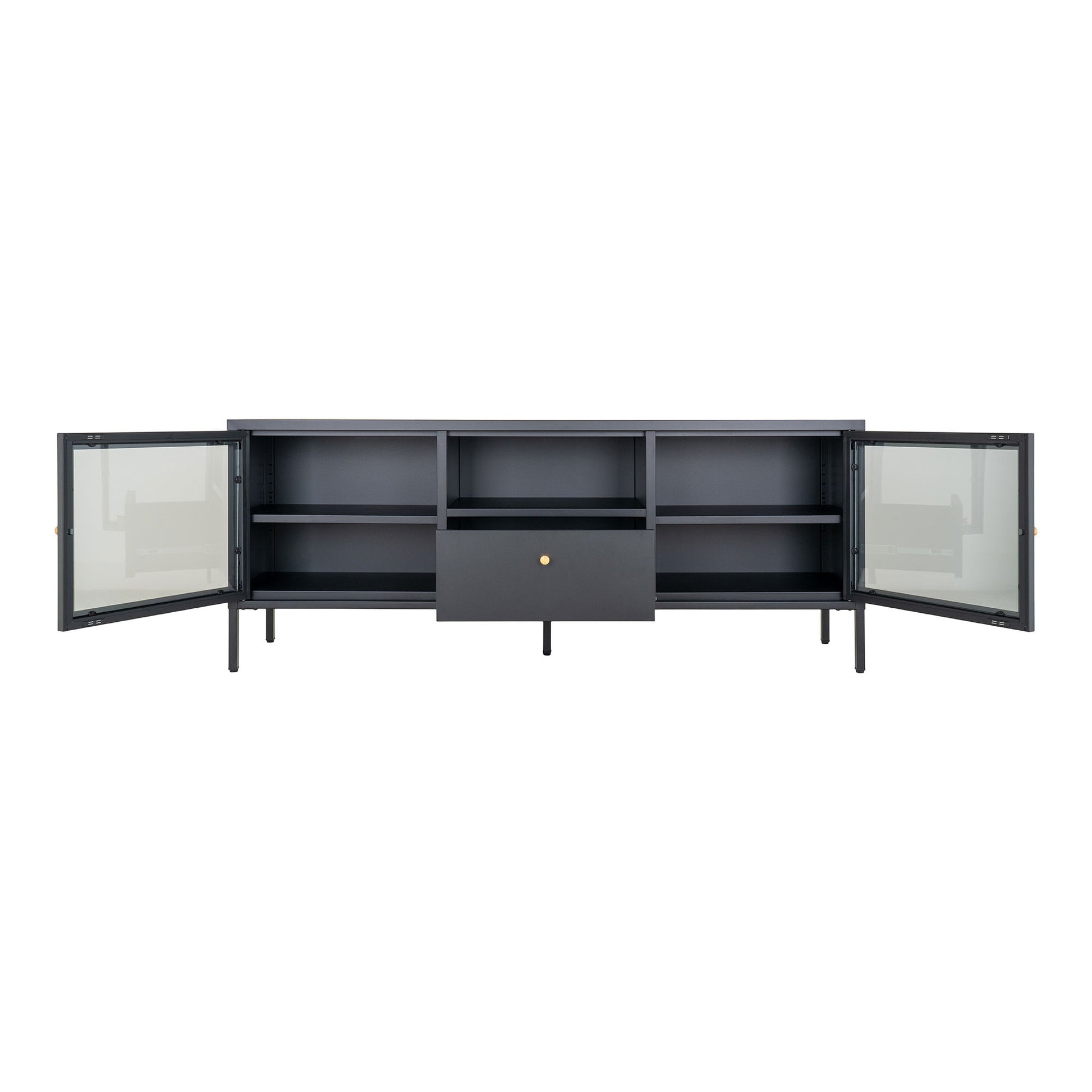 TV-Bænk, 2 glaslåger, 1 skuffe, stål, sort\n150x35x60