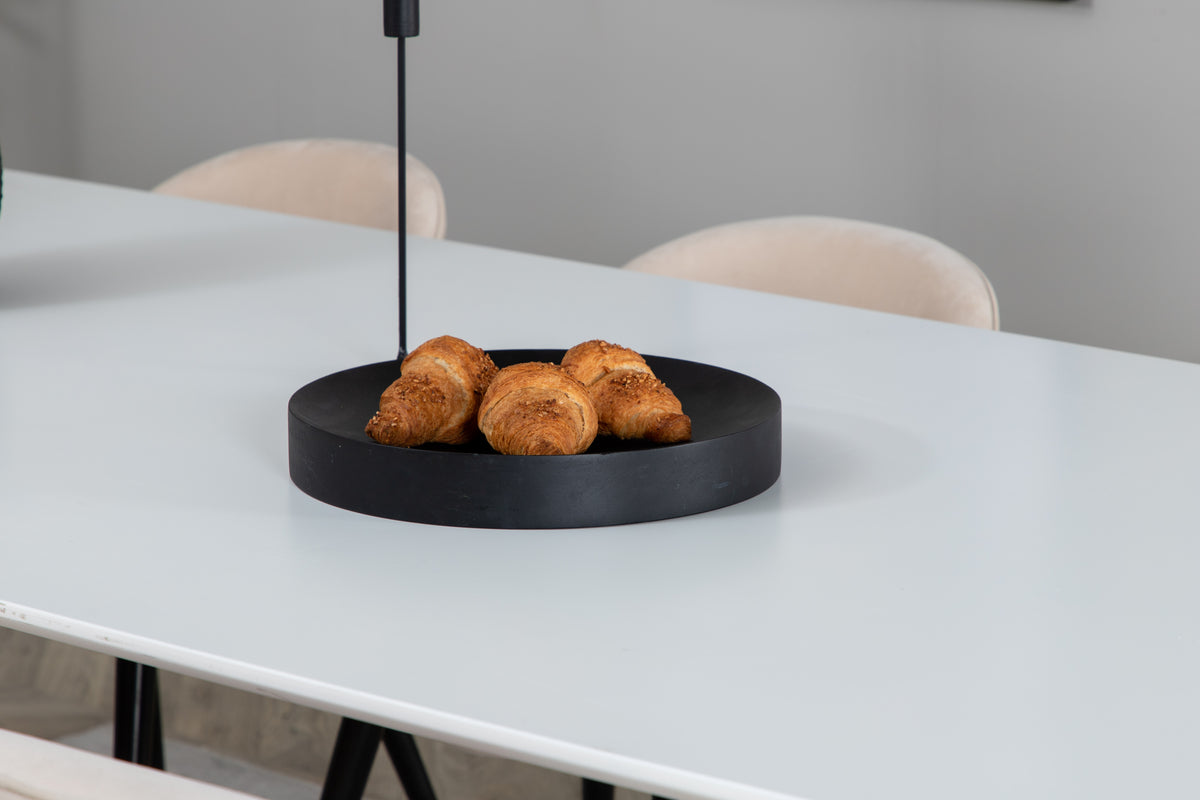 Elegant og luksuriøst – vores spisebord Polar gør her sammen med beige spisestole i serien Velvet succes i mange hjem.
