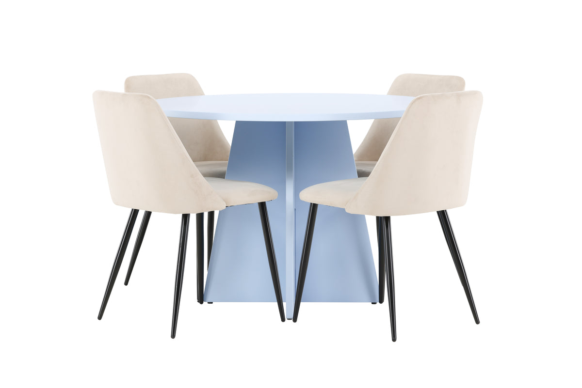 Spisebordsstol 2-pak Beige + Rundt Spisebord 110 Blå