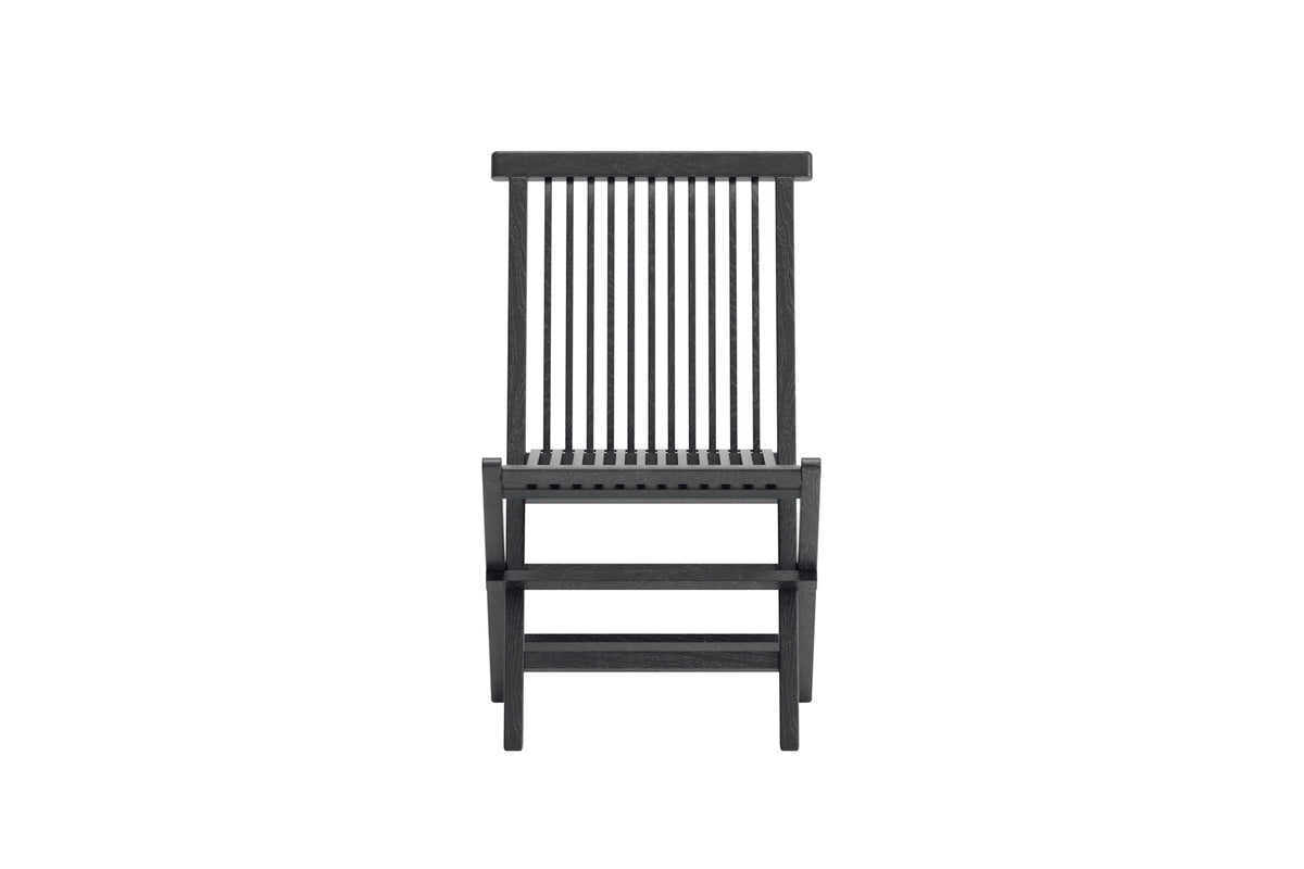 Kenya stol er en klassisk og praktisk spisebordsstol fremstillet i sort teak. Det tidløse ribbede design giver et stilrent udtryk og gør, at stolen passer lige så godt rundt om spisebordet på altanen som i haven. Takket være den foldbare konstruktion er Kenya nem at opbevare og flytte, hvilket gør den både smidig og mangfoldig. En stol som kombinerer elegance og funktion – perfekt til både hverdag og festlige lejligheder udendørs.