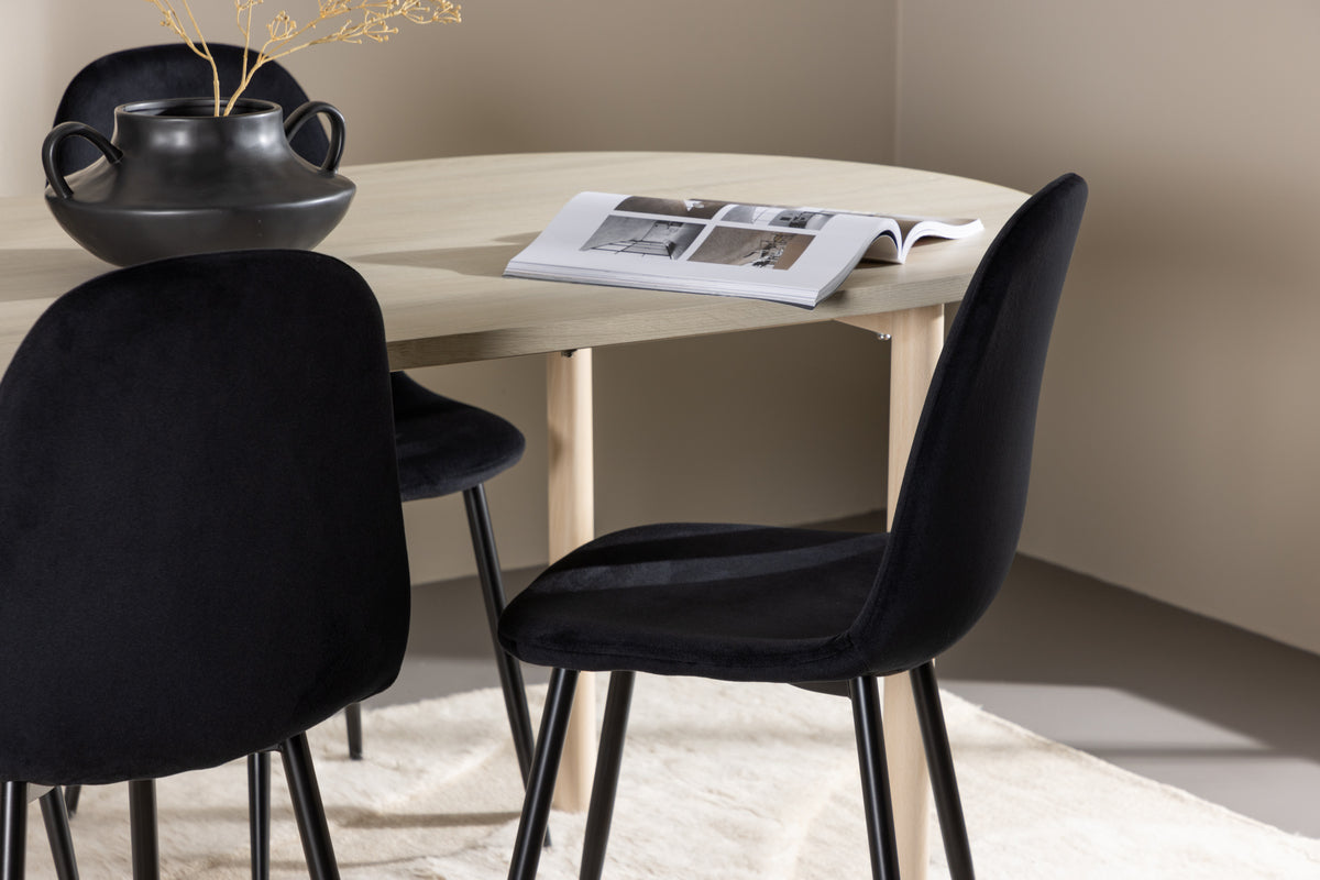 Spisebordsstol 2-pak Sort + Ovalt Spisebord 180 x 90 Whitewash
