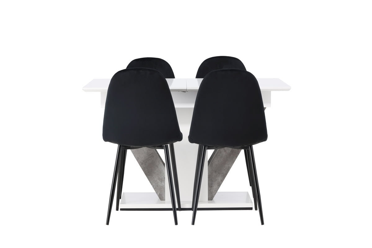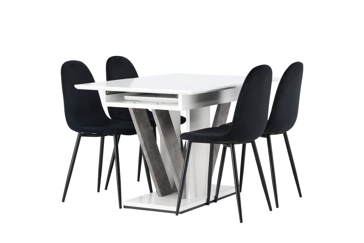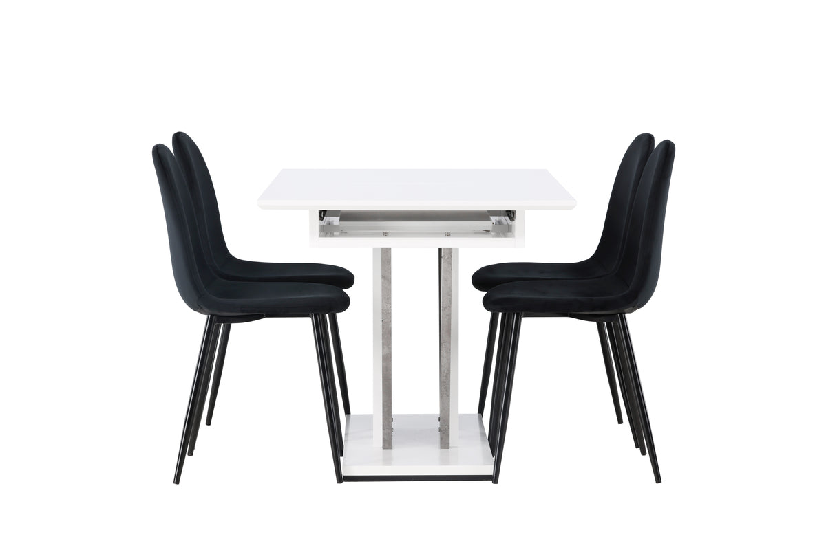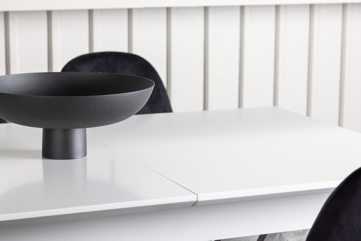 Sammen med vores velourstole fra Polar-serien bliver denne spisegruppe komplet. Polar-stolene imponerer med deres fuldpolstrede design, klassiske stoleben i sort metal og en let afrundet ryg for ekstra komfort. Sædet er beklædt i et smukt sort velourstof, som både føles luksuriøst og behageligt at sidde på. Det skal føles skønt at komme hjem til hyggelige måltider!