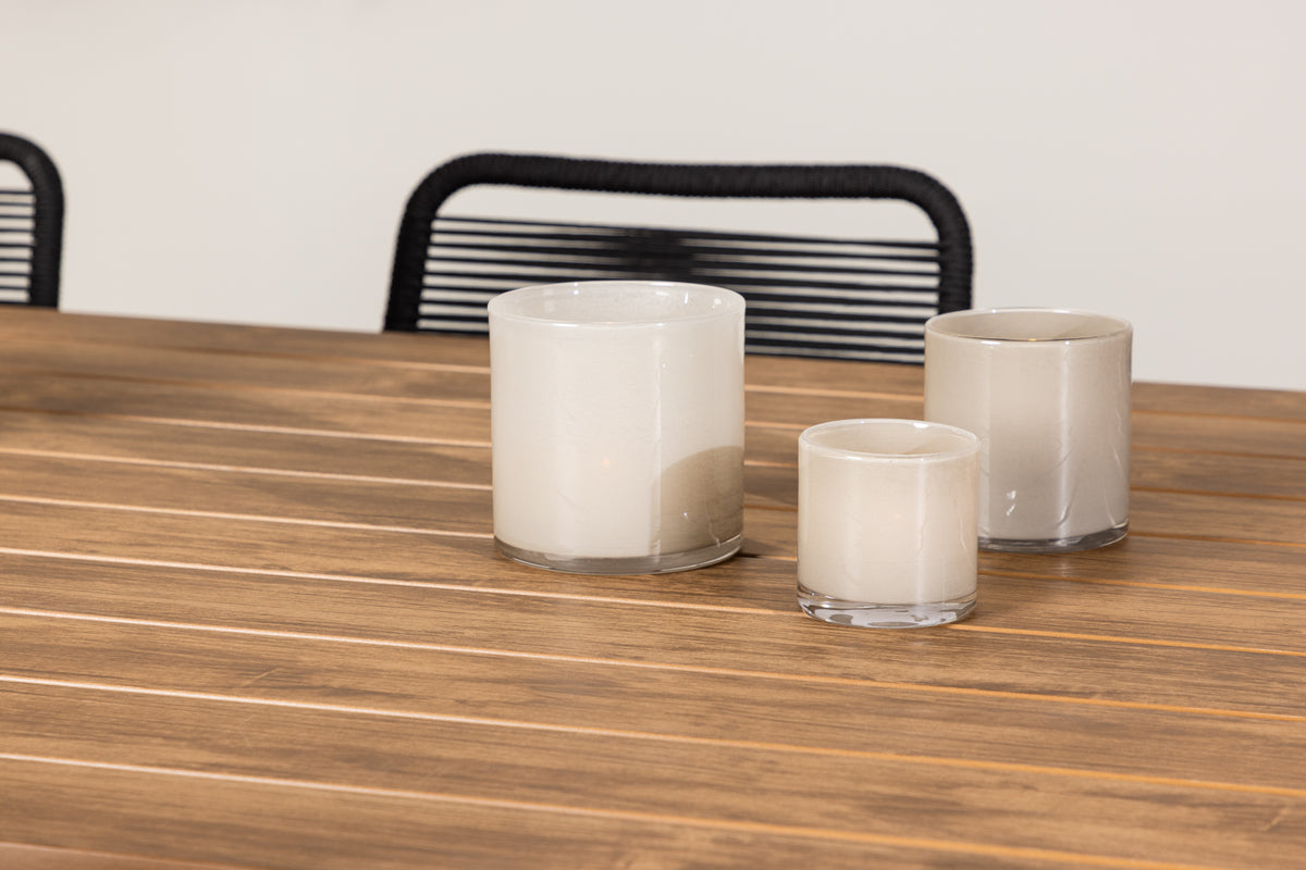 Opdag den perfekte spisegruppe til dit udendørsmiljø med vores elegante ensemble, bestående af bordet Garcia og stolene Lindos.