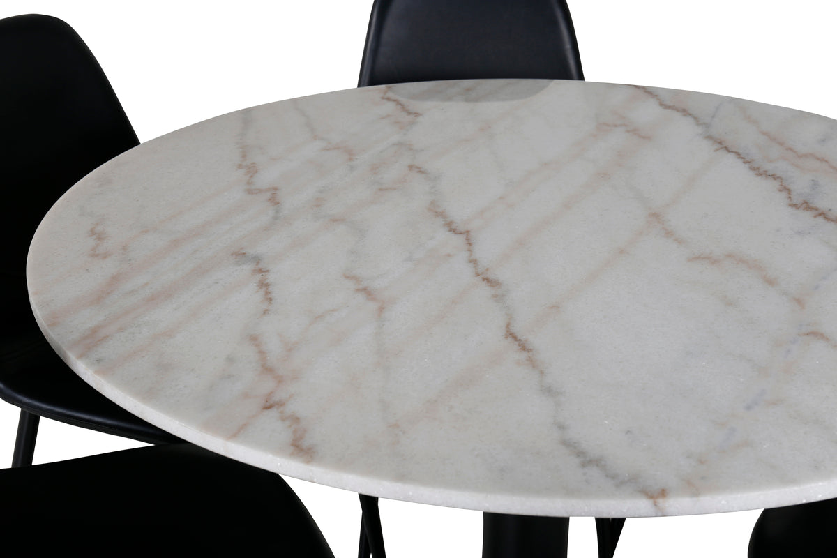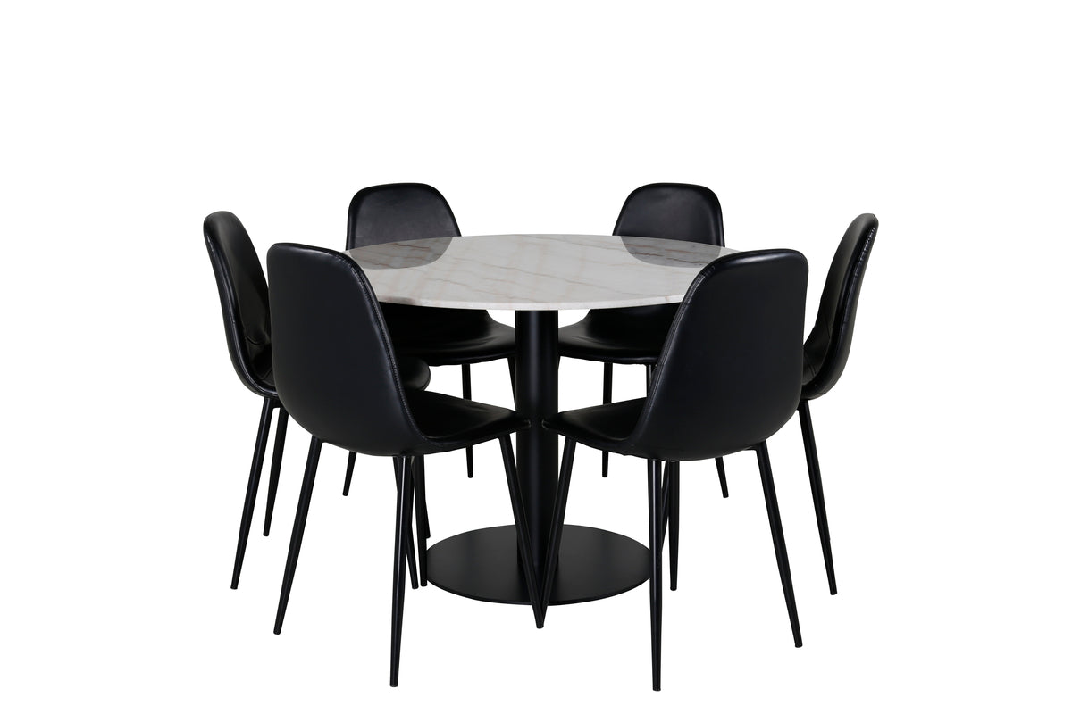 Spisebordsstol 2-pak Sort + Rundt Spisebord 106 Hvid