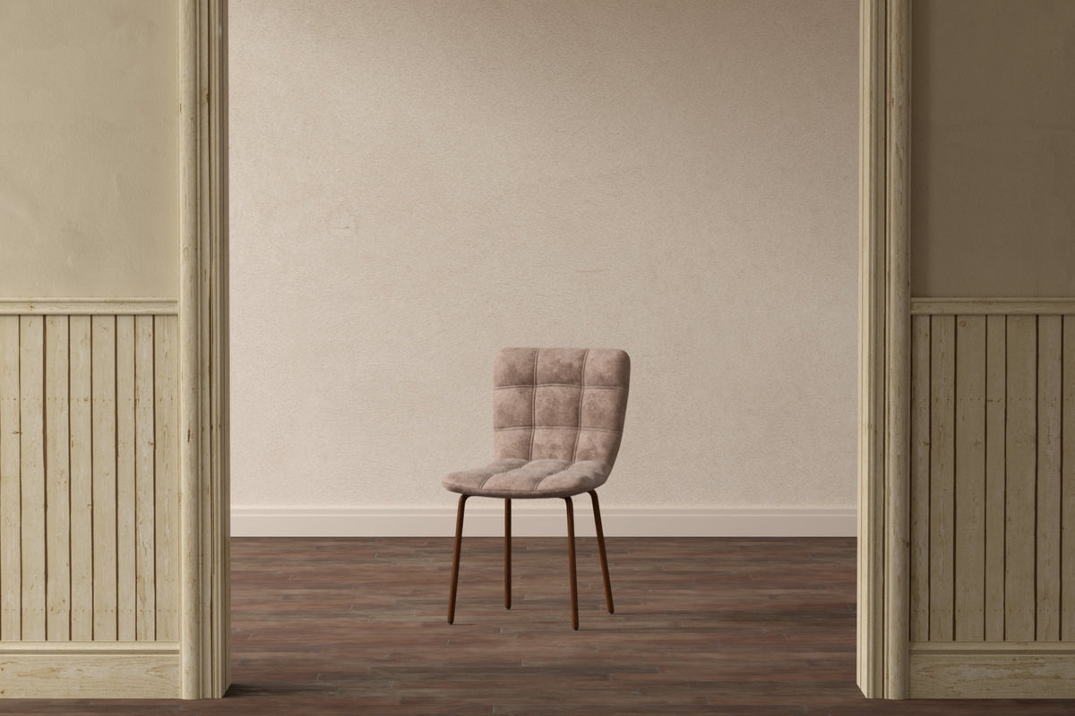Punsch er en elegant spisebordsstol med betræk i brun velour, som giver en blød og indbydende følelse. Den syede ryg tilfører en stilfuld detalje og gør stolen ekstra behagelig at sidde i.