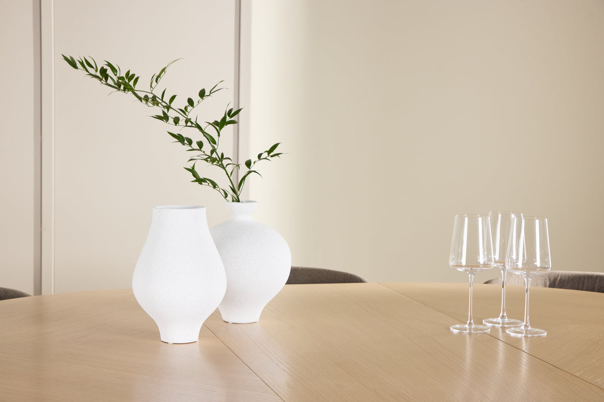 Spisebordet Strada kombinerer stil og funktionalitet med sin lyse, hvidvaskede finéroverflade. Bordet har en naturlig struktur, der lyser igennem og tilfører en tidløs elegance til rummet. Med en diameter på 120 cm er Strada perfekt til hverdagsmåltider, og takket være den smidige forlængerfunktion kan bordet nemt udvides til 170 cm, når behovet opstår, hvilket gør det ideelt til større sammenkomster og festlige tilfældigheder. Den stabile konstruktion og det højkvalitets materiale sikrer langvarig anvendelse.